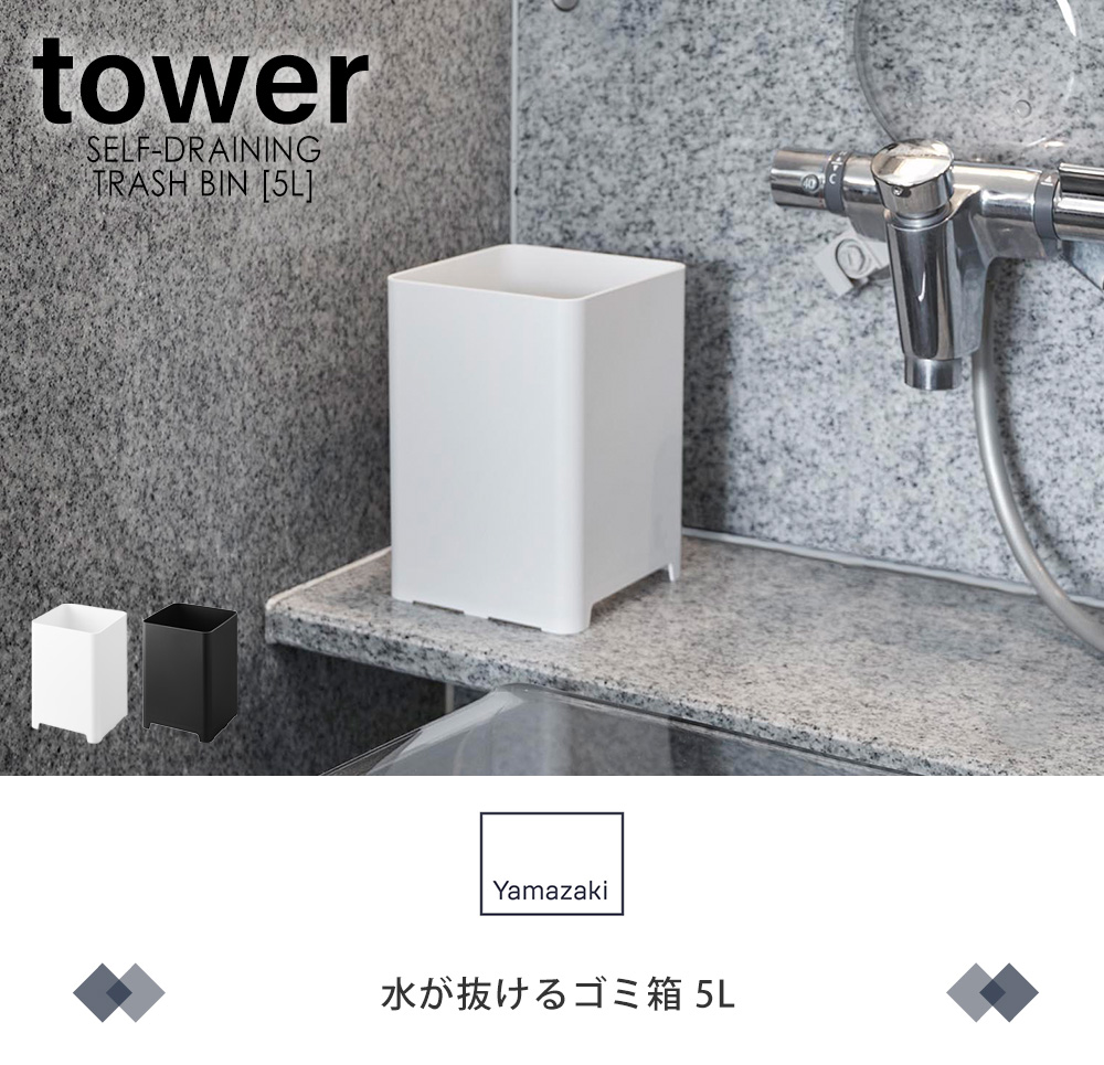 山崎実業 公式 タワー 水が抜けるゴミ箱 5L tower ごみ箱 ダストボックス 水抜け穴 お風呂 浴室 大浴場 ホテル 銭湯 掃除しやすい 1812