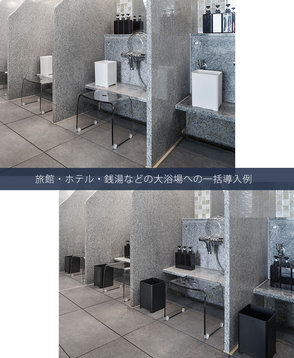 旅館・ホテルの大浴場、銭湯などにまとめて設置して頂くと、統一されたスッキリとした印象を保ちます。