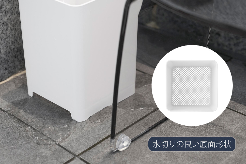 底面全体に小さな穴が開けられていて素早く水切りができるようになっています。掃除がしやすく衛生的です。