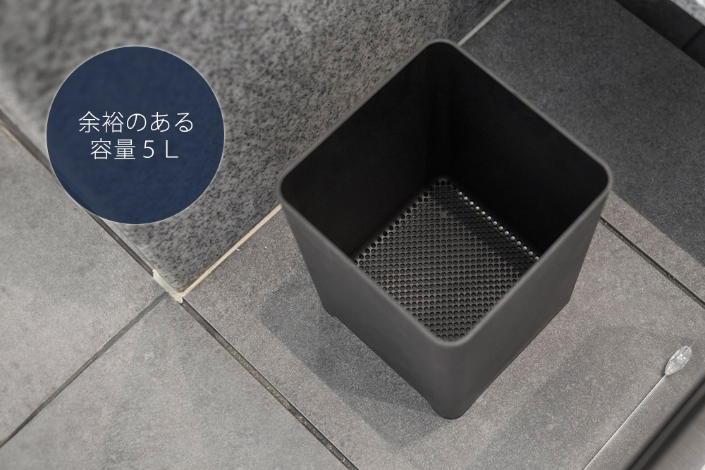 ゴミ箱の容量は5Lです。ある程度まとまった量のゴミも余裕を持って収納できます。