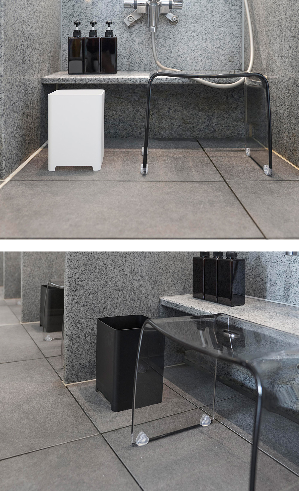 シンプルでスタイリッシュなデザインのお風呂用ゴミ箱です。さまざまな浴場・浴室に合わせることができます。