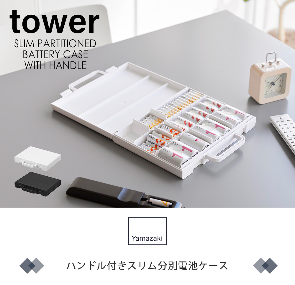 山崎実業 公式 タワー ハンドル付きスリム分別電池ケース tower 乾電池 単3 単4 単2 単1電池 単三 単四 収納 保管 仕切り 予備 10462 10463