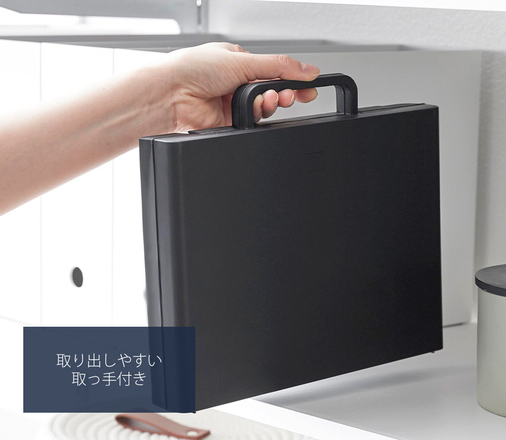 持ち運びやすく取り出しやすい取っ手が付いており、必要なときにスムーズに取り出せます。