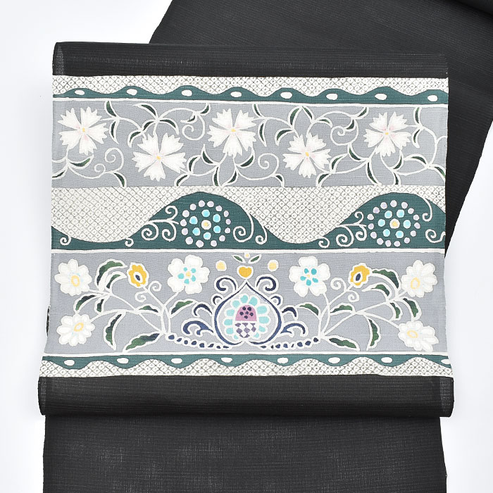 京型染め ボタニカル文様 九寸 名古屋帯 正絹 日本製 送料・代引き無料![商品番号:22180]
