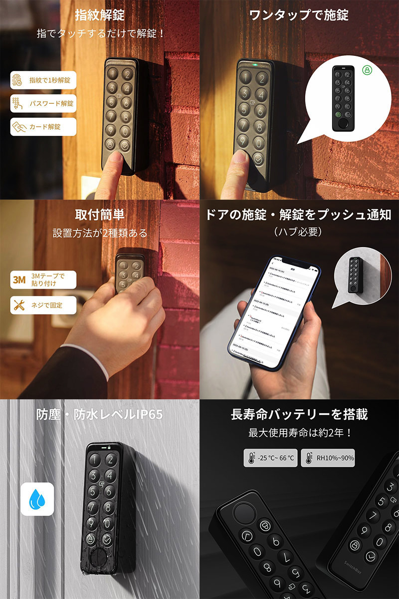 SwitchBot キーパッドタッチ 指紋認証パッドに スマートキー 「SwitchBto ロックPro」を2個セット
