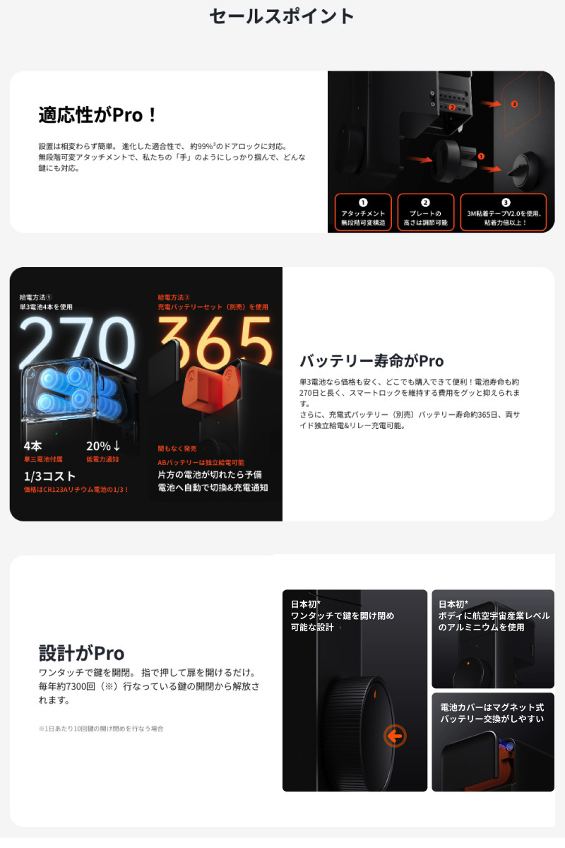 「ただドアロックをスマート化する」だけではなく、より細かなニーズにアプローチするとともに、「スマートロックでいかに安全を守れるか」という点にも着目し、暮らしをワンランク上へと導くようなスマートロックの開発に努めました。SwitchBot渾身の技術と開発への思いが込められた結晶が、「ロックPro」です。