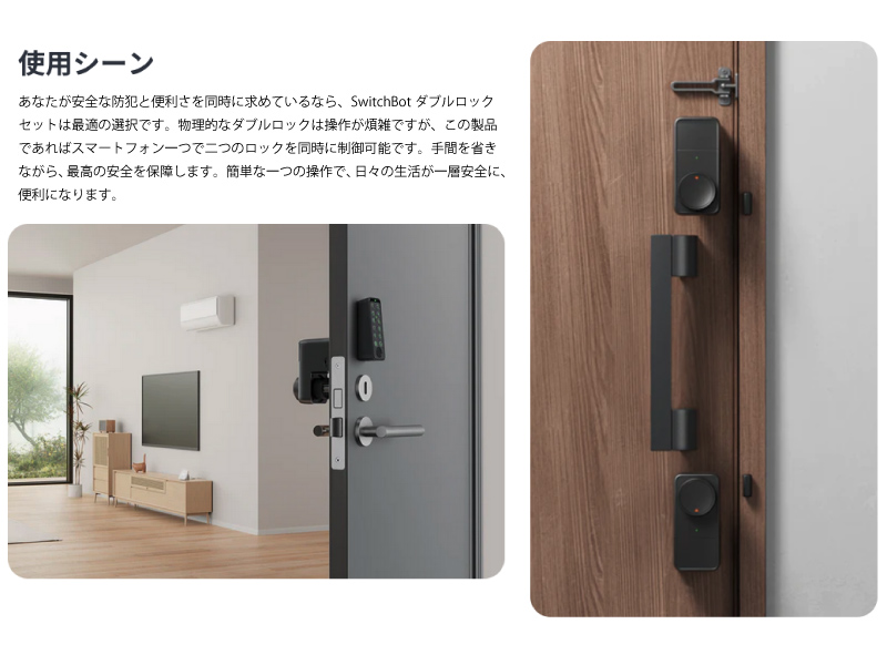 ■ ロック Proを組み合わせて、SwitchBotダブルロックセットはさらに強化され、あなたの家に更にスマートな安全対策をもたらします。