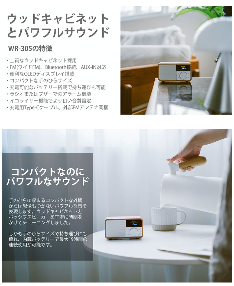 【ウッドキャビネットとパワフルサウンド : WR-305の特徴】