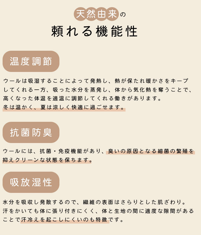 秋冬は暖かく、春は湿気を吸収して涼しい、体にも心にもうれしいインナー。