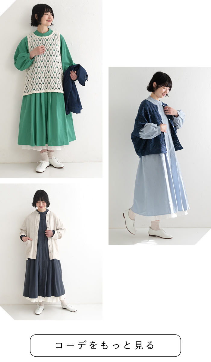 さらりと一枚で着るのはもちろん、クロシェベストやカーディガンを合わせて着こなすのもおすすめです。