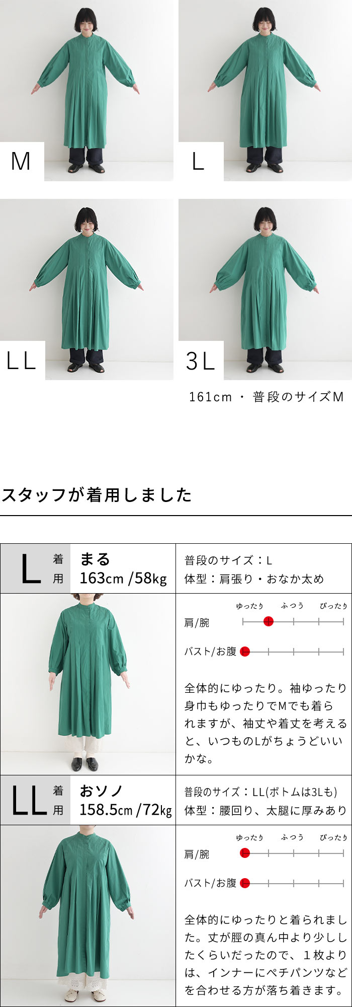 普段のサイズでゆとりを持って着られる感だと思います。ややゆったりめのシルエットなのでお好みでワンサイズダウンも◎。小柄さんは着丈や袖丈がやや長く感じるかもしれません。 スタッフ着用画像もあわせてご検討ください。