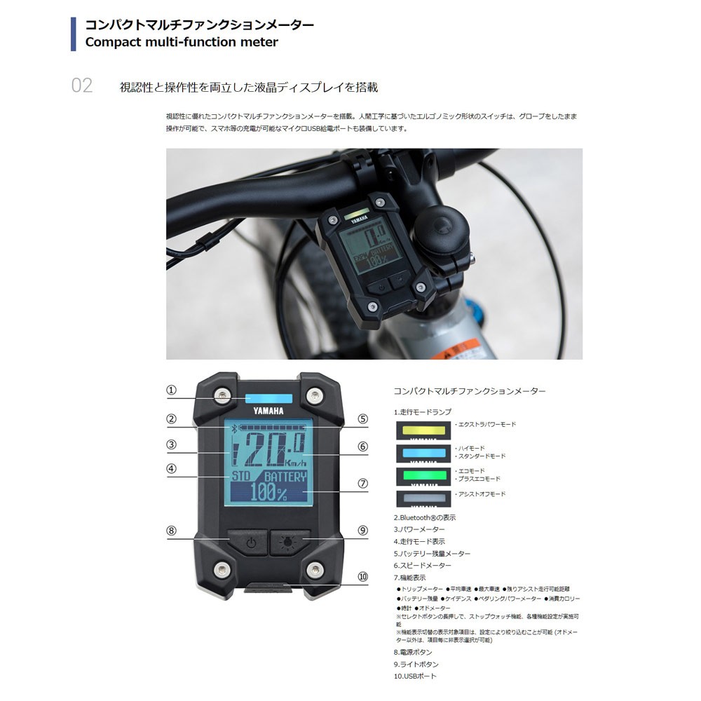 YPJシリーズ内、最も小型軽量でありながら、パワフルなアシストを生み出すドライブユニット「PW-X」。ハイパワーかつライダーの入力にクイックに応答するエクストラパワーモードを搭載。トレイルから街中までパワフルな走りが楽しめます。6つの走行モードが選択可能で、市街地から山遊びまでパワフルな走りを楽しめます。