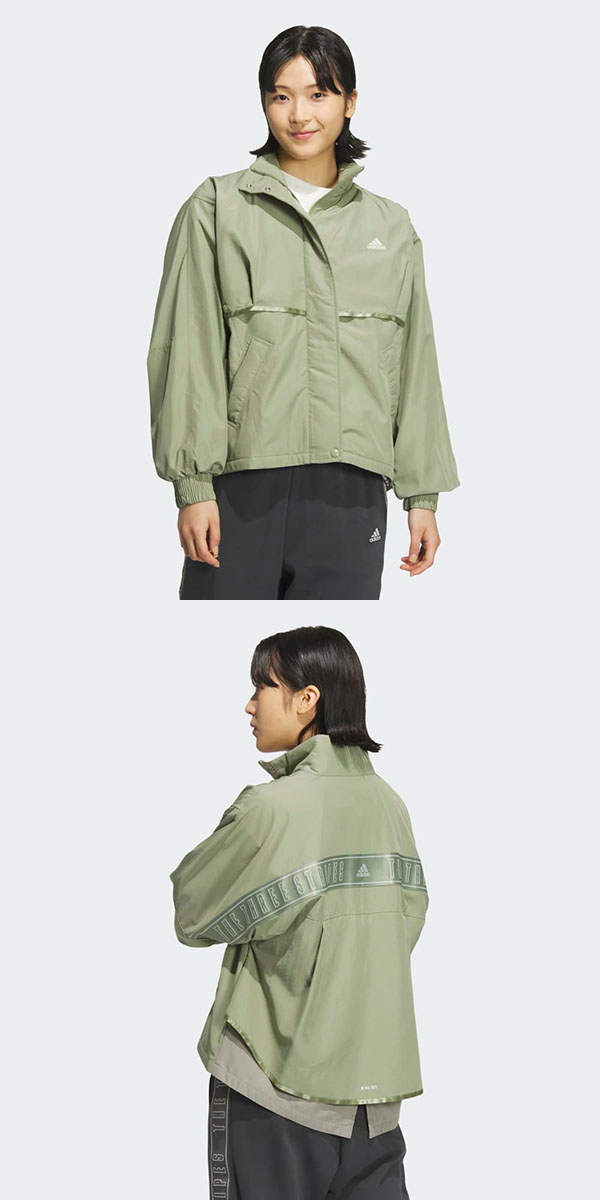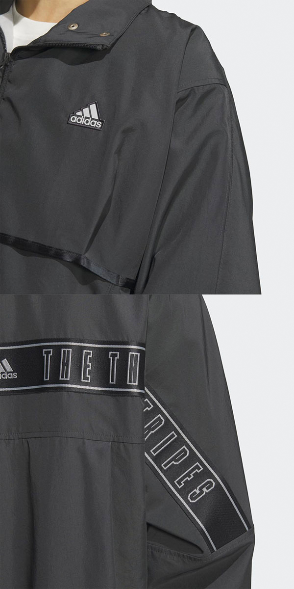 朝の通勤・通学から、夕方の友達との外出まで活躍する、なにかと頼りになるウーブンジャケットが登場。ちょっと寒い日にはスウェットなどの上にも羽織れるゆったりした作りながら、オールシーズン着られるデザイン。貴重品を入れられるジップポケットも付いている。この製品には、100%リサイクル素材が使われている。これまで作られてきた製品の素材をリユースすることで、ゴミの量、限りある資源への依存、そしてアディダス製品のフットプリントを減らすことにつながる。