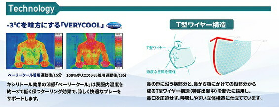 ◆汗に反応して熱を吸収する植物由来キシリトールを生地に配合した涼感素材「ベリークール(VERY COOL)」を採用したベリークールフェイスマスク