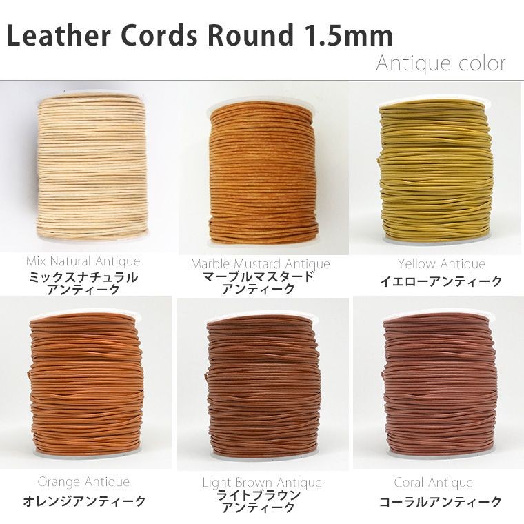 1.5mmの細身の丸革ひも。手作りアクセや小物作りに!