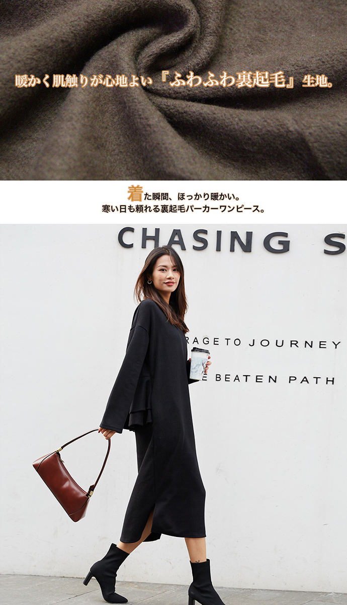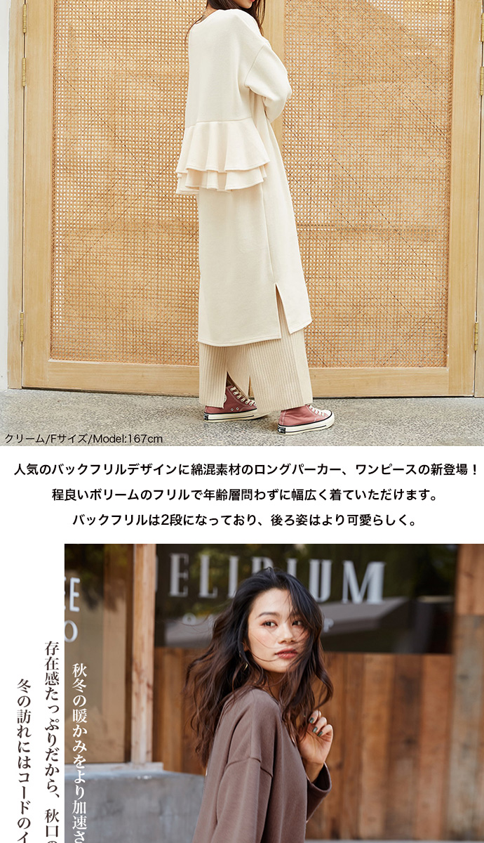 人気のバックフリルデザインに綿混素材のロングパーカー、ワンピースの新登場!