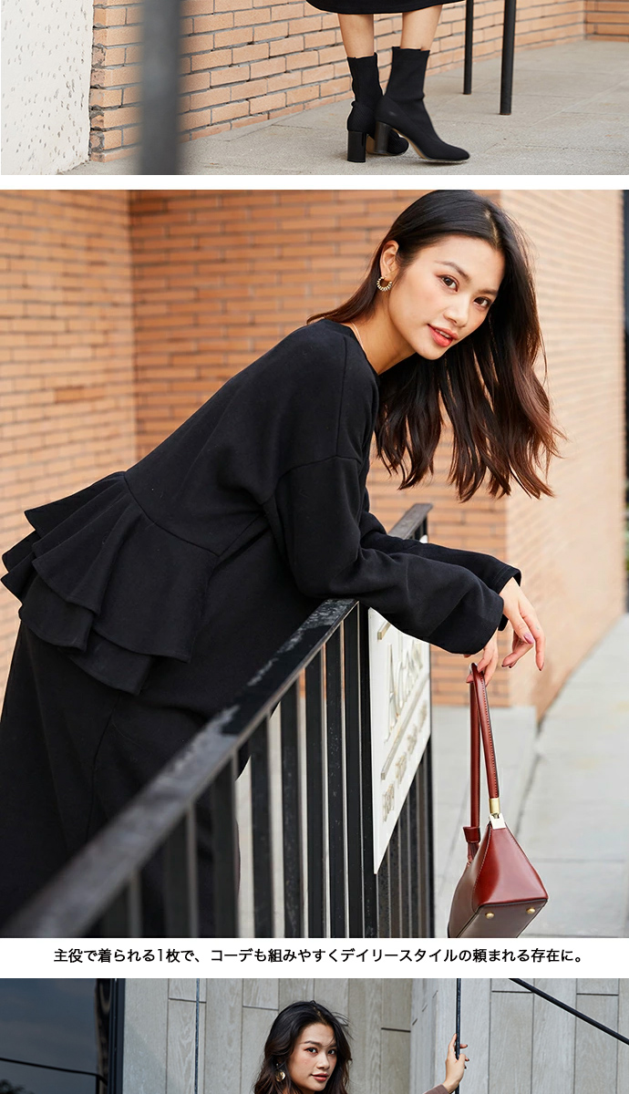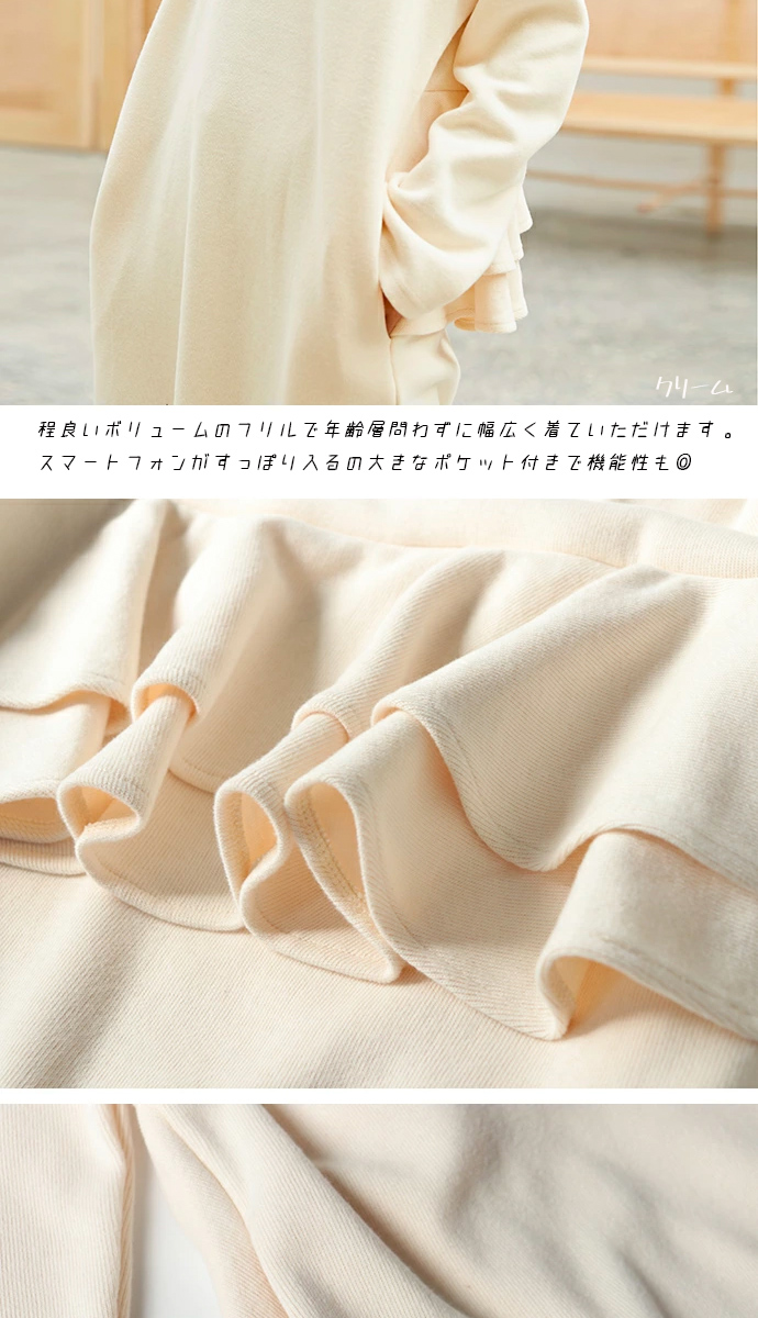程良いボリュームのフリルで年齢層問わずに幅広く着ていただけます。