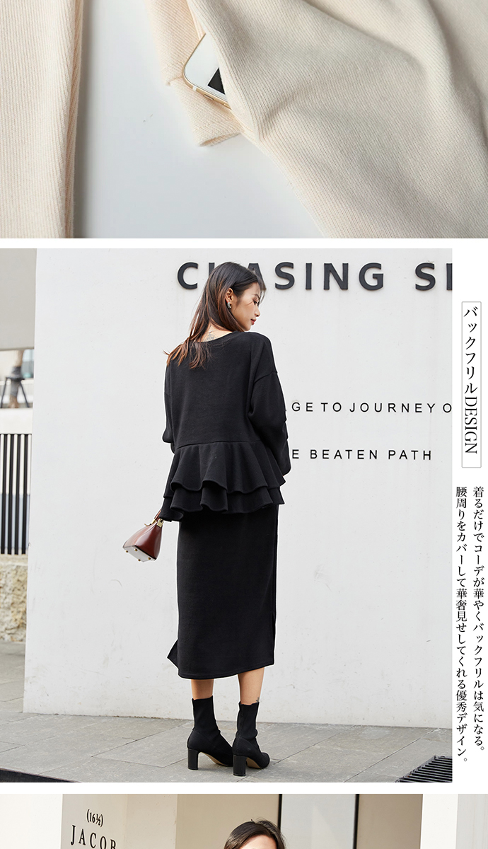 ゆったりとしたサイズ感でラフな着こなしに。バックフリルデザインだから1枚で着てもシンプルになり過ぎないのが嬉しいポイントの一つ。