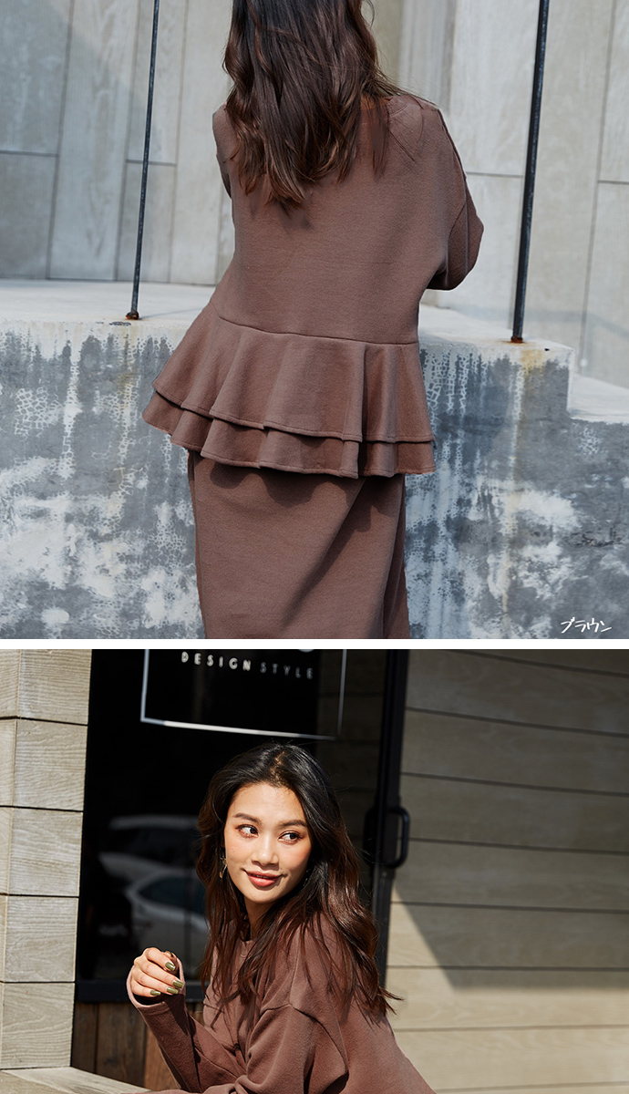バックフリルは2段になっており、後ろ姿はより可愛らしく。バックスリット入りで抜け感のある印象に。