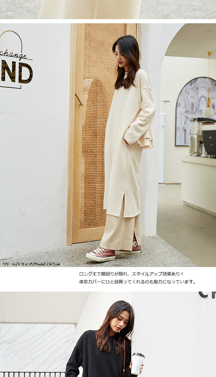 ロング丈で腰回りが隠れ、スタイルアップ効果あり!体型カバーにひと役買ってくれるのも魅力になっています。