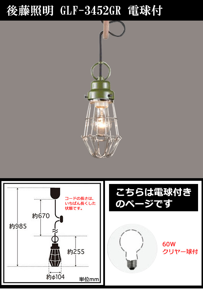 後藤照明 GLF-3452GR 小型ペンダントライト ビス止めガード 電球同梱 グリーン 白熱灯ガード 大正ロマン 昭和レトロ GLF3452GR「送料無料」