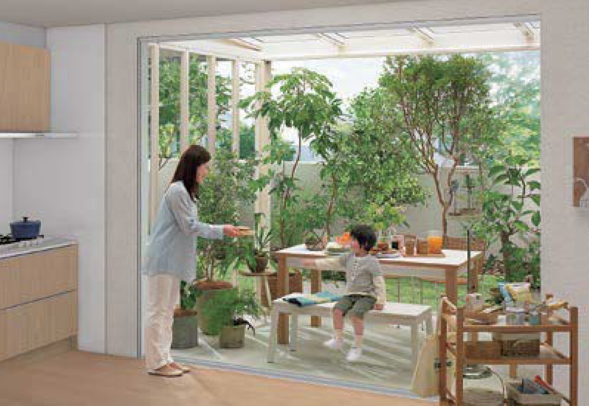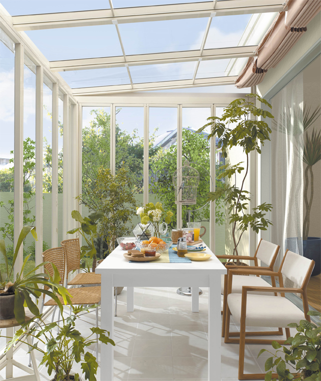 クローズすれば光あふれるガーデンルームへと表情を変えるジーマ。