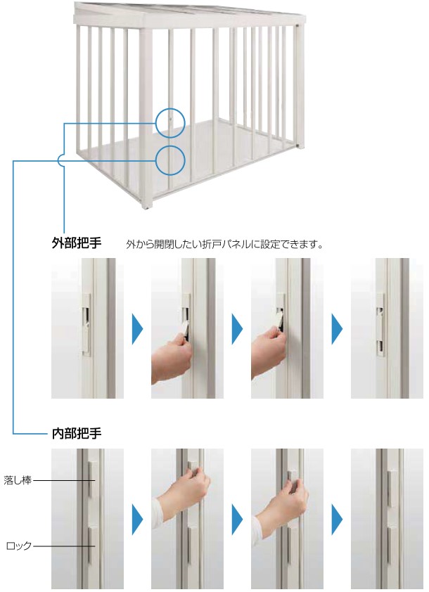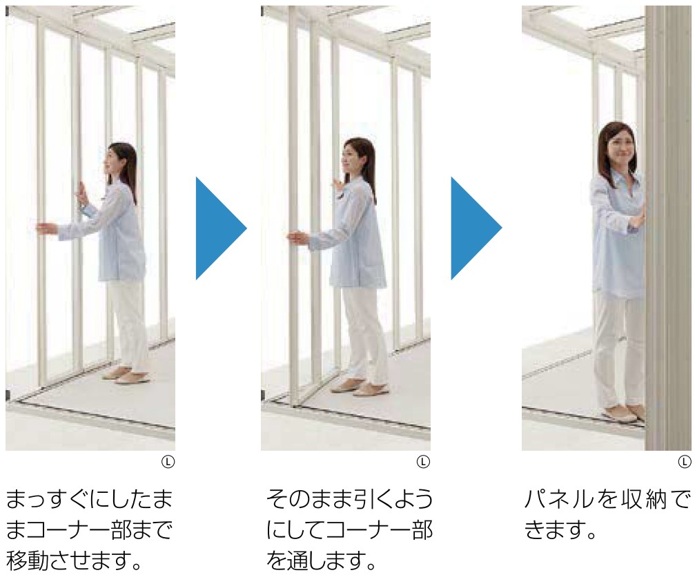 折戸パネルは、一折ずつ手で動かせます。