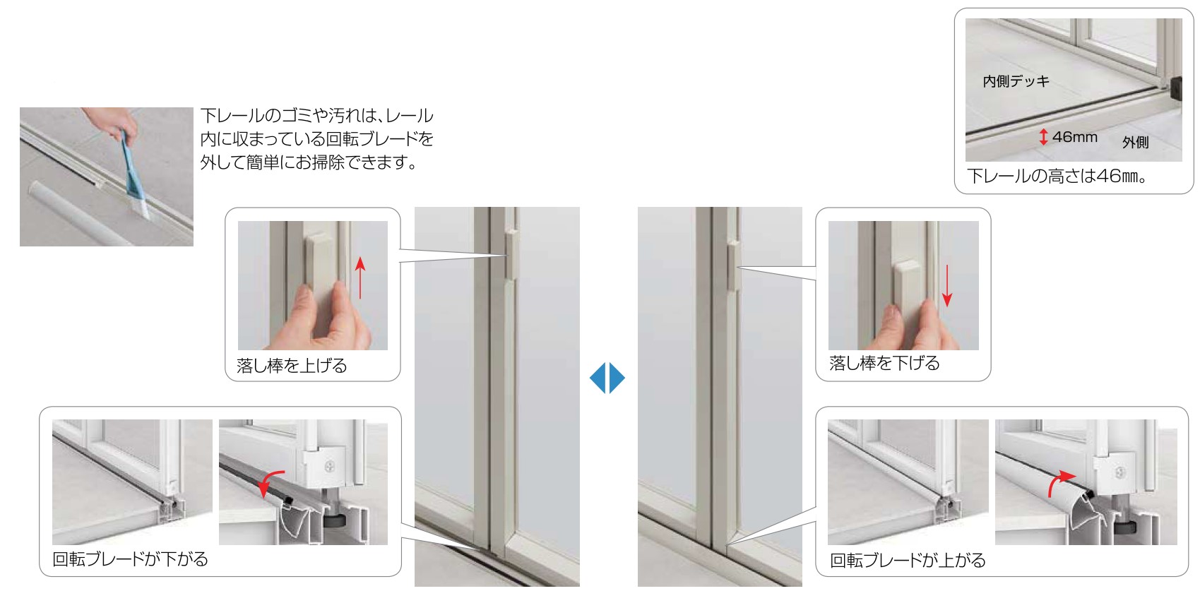 ●雨風をシャットアウトし、お手入れ簡単な下レール回転ブレード。