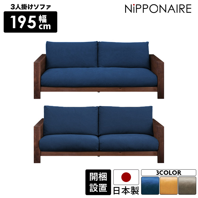 ソファ ソファー 3人掛け 幅195cm アーム付き 三人掛け おしゃれ 北欧 木製フレーム 日本製 ウォールナット 布 ファブリック カバーリング