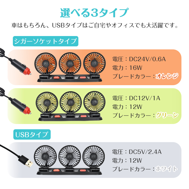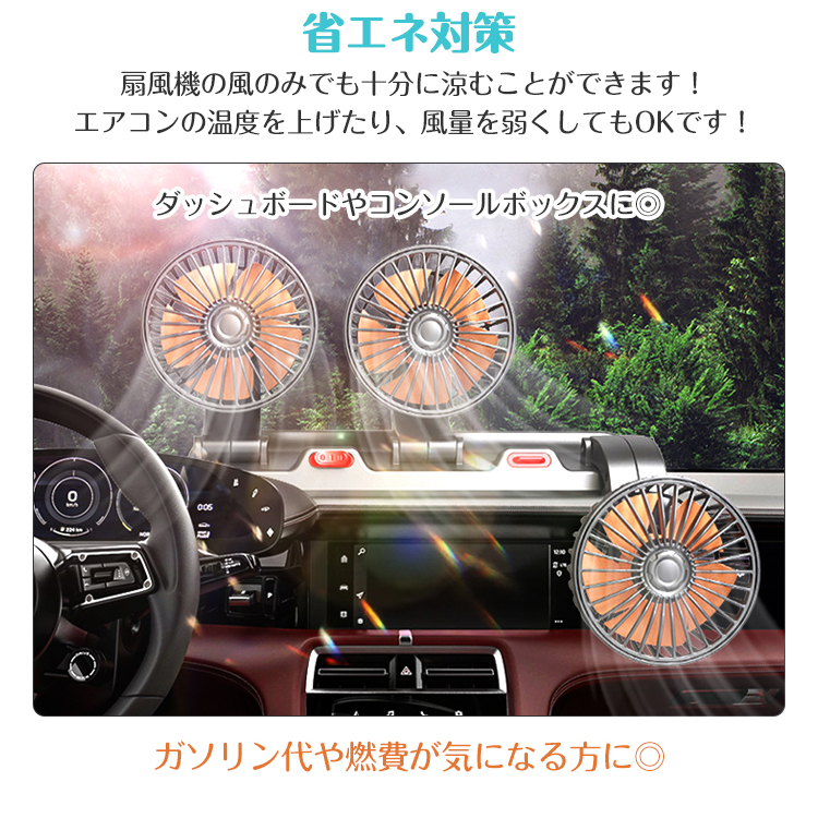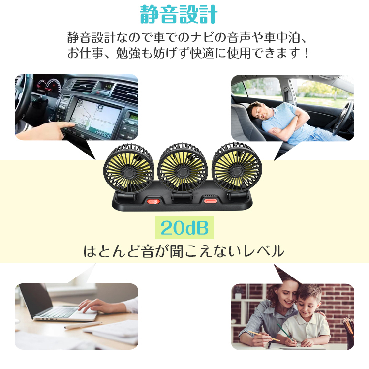 サーキュレーター 車用 扇風機 車 車載 USB扇風機 ファン ポータブル トリプルファン USBファン USB 12v 24v 換気 卓上 角度調整 車中泊 アロマ 3連 三頭 シガーソケット 2段階 3段階 360° 角度調整 低騒音 静音 省エネ 夏 蒸れ解消 車中泊 5v ダイハツ レヴォーグ カー用品 シガー シガレット電源 トラック 車内扇風機 熱中症対策 父の日 母の日 ギフト プレゼント ポイント利用
