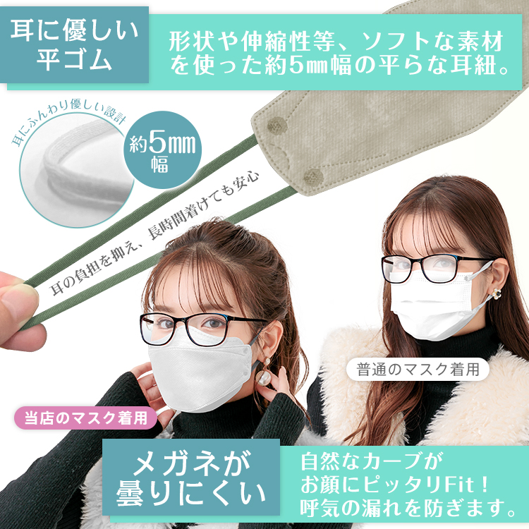 ■やわらか平ゴムタイプの耳ひも採用