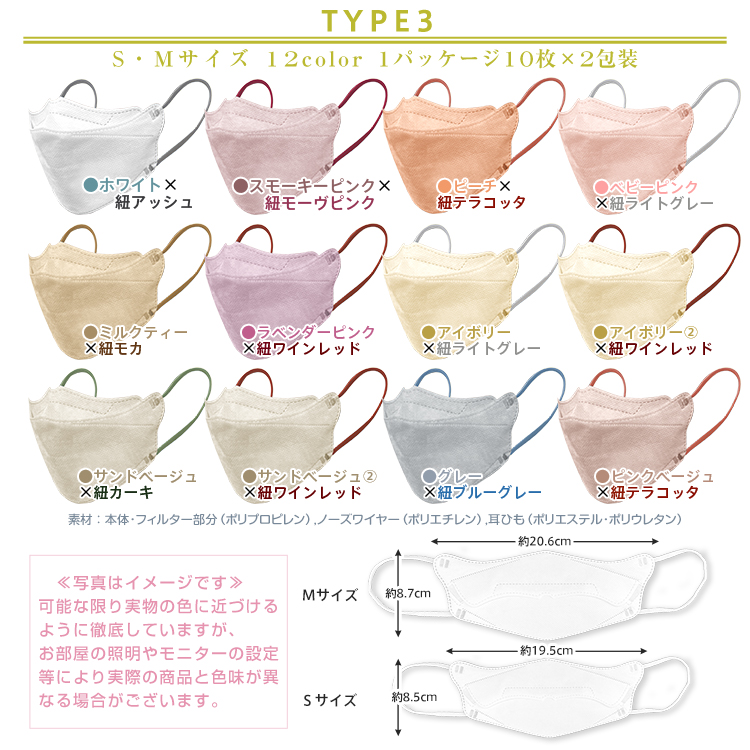 マスク 不織布 立体 おしゃれ 20枚 3D カラー 小顔 耳紐 バイカラー 血色 使い捨て 大人 子供 女性 キッズ 耳紐 平ゴム 耳が痛くない 蒸れない 花粉 個包装