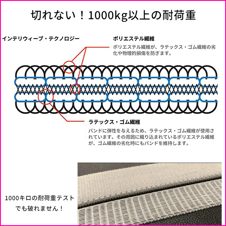 素材:高密度ポリマー繊維で、しっかりとした高負荷を実現。