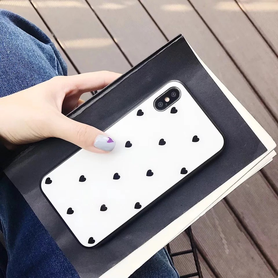 iPhoneXs ケース iPhone8 iPhone7 iPhoneXR iPhoneXs Max ケース ソフトケース ハート鏡面ケース白黒アイフォン 7 Plus 可愛い ガラスおしゃれカバー キラキラ