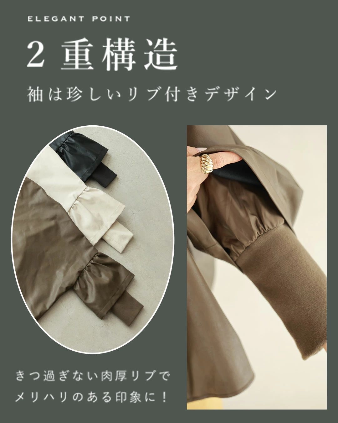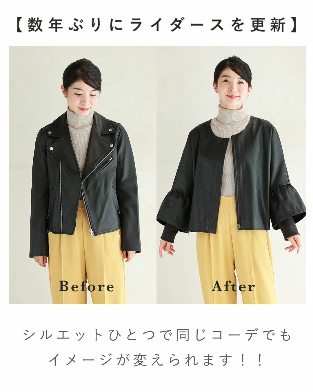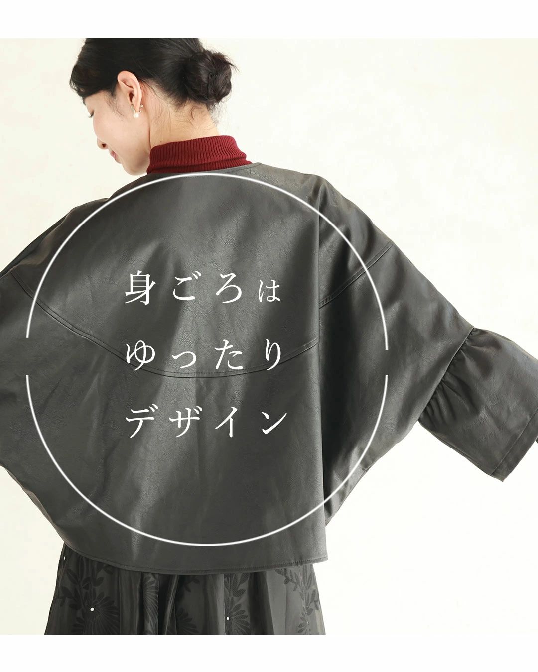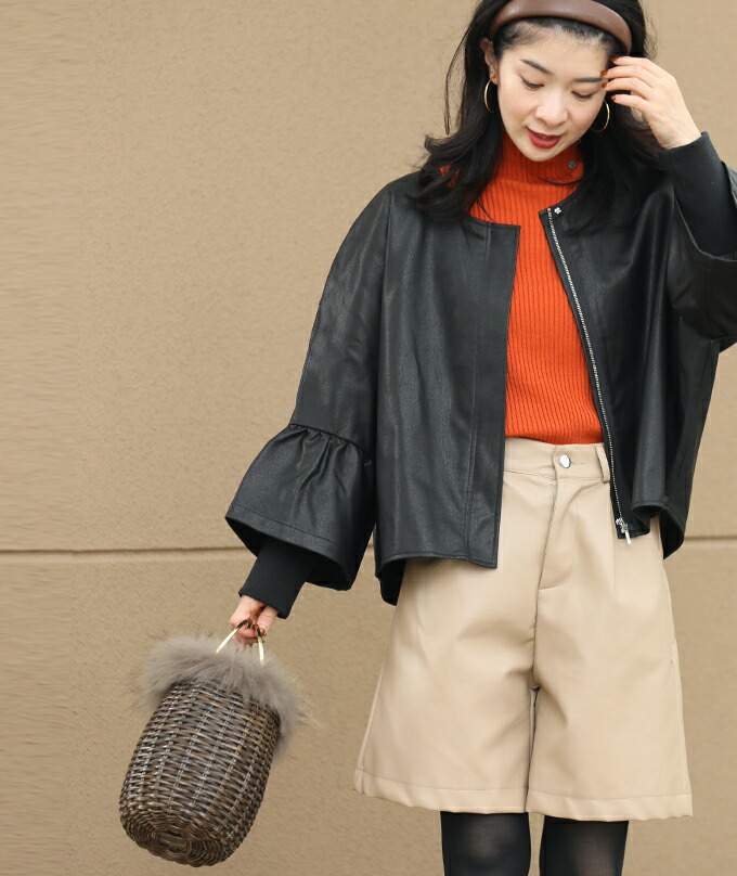ハードになりすぎない フリル袖 エコレザー