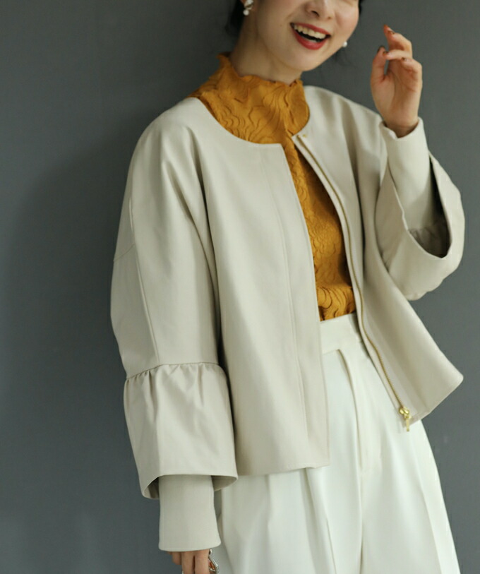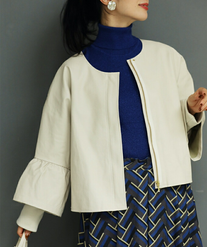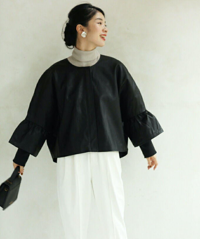 fbk00010od ハードになりすぎない フリル袖 エコレザー 新作 新着 再入荷 CAWAII FRENCHPAVE フレンチパヴェ エレガント ベーシック カジュアル 可愛い かわいい カワイイ おしゃれ オシャレ お洒落 個性 個性的 定番 ベーシック 大人かわいい 大人可愛い 上品 女性らしい デザイン スタンダード ナチュラル きれいめ キレイめ シンプル フェミニン レディース レディースファッション 大人 ママ ミセス 30代 40代 50代 60代 ジャケット 羽織り フリル袖 エコレザー トップス S M L フリーサイズ フリー 小さめ 小さめサイズ 小さい 小さいサイズ 低身長 痩せ ほっそり 小柄 細身 標準サイズ 大きめシルエット 大きい 大きめ ビッグシルエット ぽっちゃり F サイズ自由 日常着 普段着 日常使い 重ね着 羽織り アイボリー ブラック 春 秋 冬 秋服 秋物 春服 春物