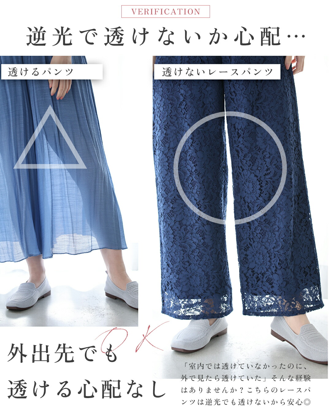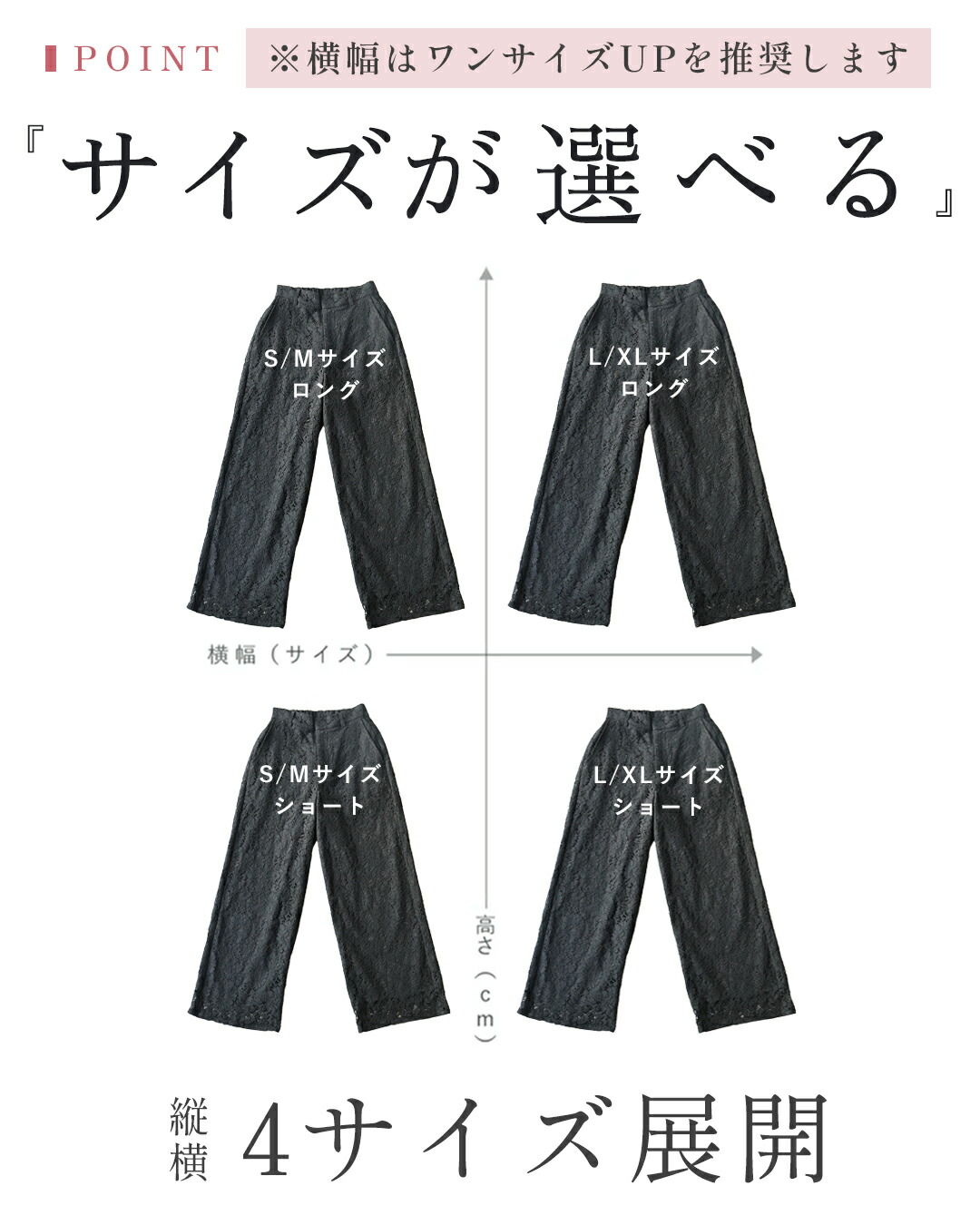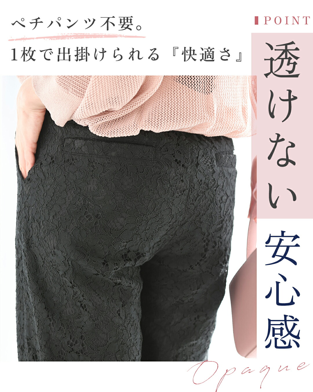SM/LXL対応 ショート/ロング丈展開 透けないレースパンツ
