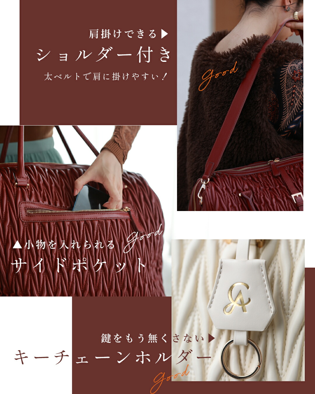 fhs00004 新作 新着 再入荷 CAWAII FRENCHPAVE フレンチパヴェ エレガント ベーシック カジュアル 可愛い かわいい カワイイ おしゃれ オシャレ お洒落 個性 個性的 定番 ベーシック 大人かわいい 大人可愛い 上品 女性らしい デザイン スタンダード ナチュラル きれいめ キレイめ シンプル フェミニン レディース レディースファッション 大人 ママ ミセス 30代 40代 50代 60代 ボストンバッグ 鞄 ハンドバッグ 合成皮革 ボルドー アイボリー ファッションアイテム 普段 日常使い リゾート 旅行 休日 春 秋 大容量 機能的