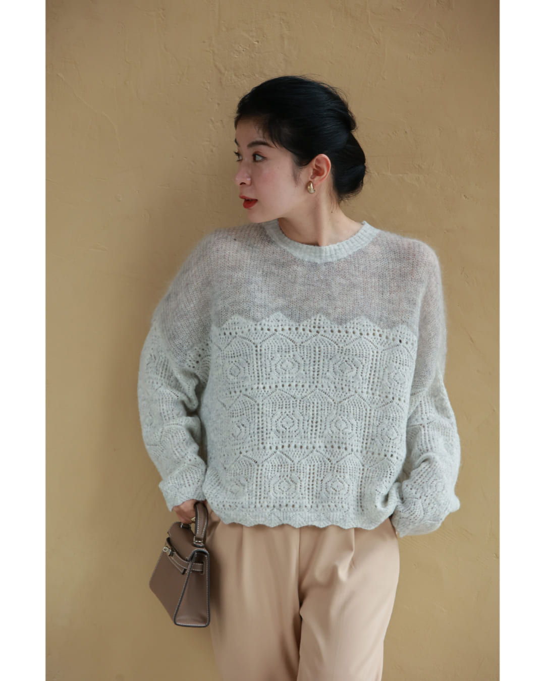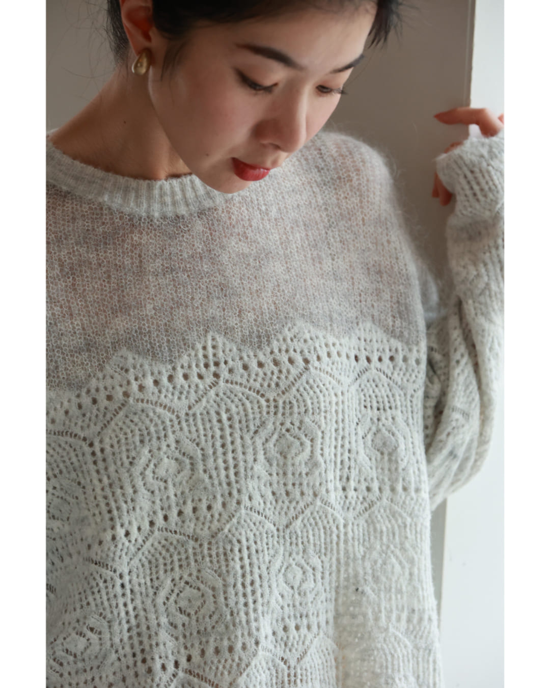 w60959ps 新作 新着 再入荷 CAWAII FRENCHPAVE フレンチパヴェ エレガント ベーシック カジュアル 可愛い かわいい カワイイ おしゃれ オシャレ お洒落 個性 個性的 定番 ベーシック 大人かわいい 大人可愛い 上品 女性らしい デザイン スタンダード ナチュラル きれいめ キレイめ シンプル フェミニン レディース レディースファッション 大人 ママ ミセス 30代 40代 50代 60代 ふんわり モヘア 切り替え 柄ニット プルオーバー トップス 2トーンカラー ざっくり網目 長袖 長そで ロング袖 ワンサイズ Sサイズ Mサイズ Lサイズ 2Lサイズ 3Lサイズ フリーサイズ フリー 小さめ 小さめサイズ小さい 小さいサイズ 低身長 痩せ ほっそり 小柄 細身 標準サイズ 大きめシルエット 大きい 大きめ ビッグシルエット ぽっちゃり F サイズ自由 ゆったり 春 秋 冬 秋服 秋物 冬服 冬物 伸びる 伸縮性 グレー 灰 体型カバー 普段着 日常使い ヘビロテ おでかけ 旅行 休日
