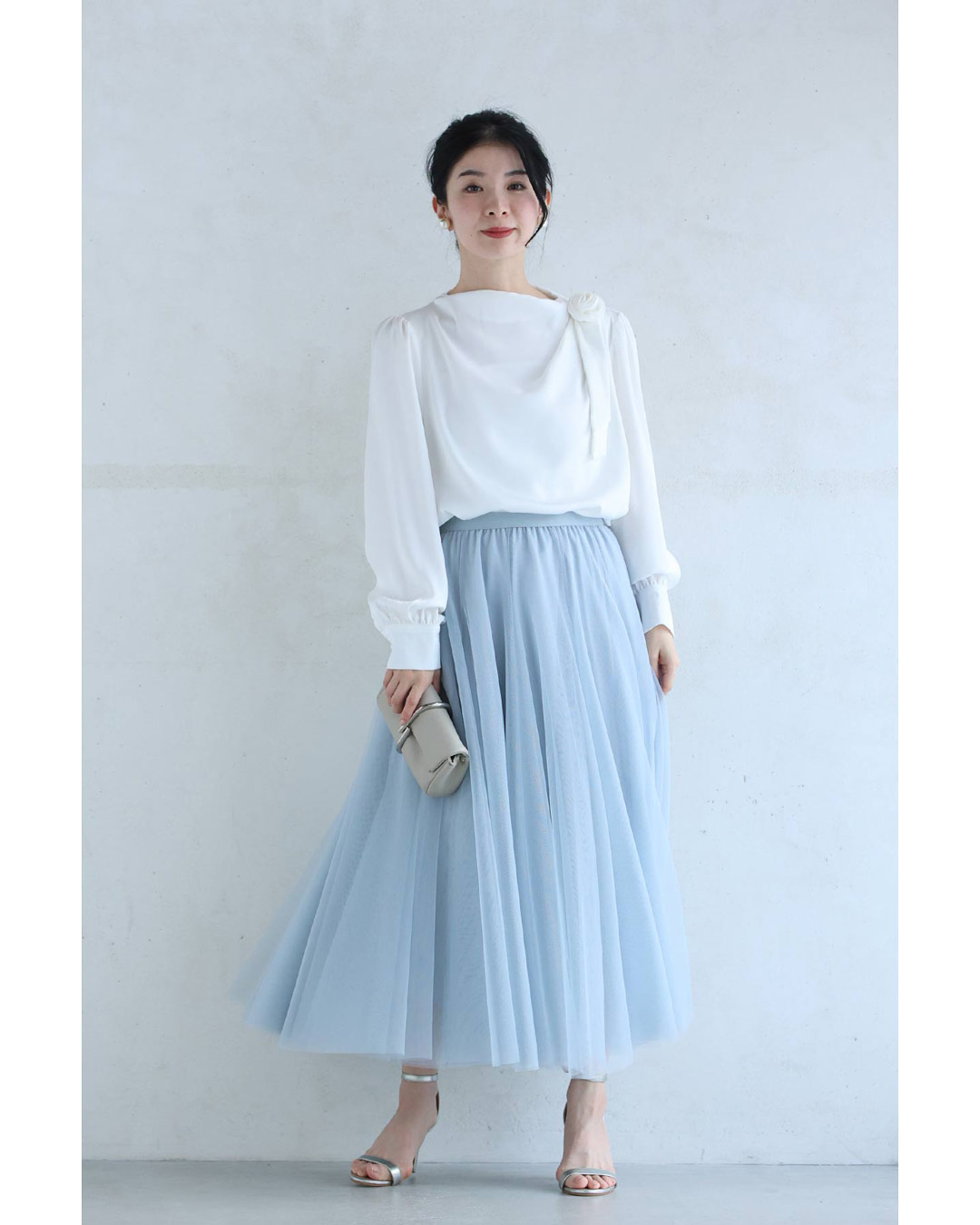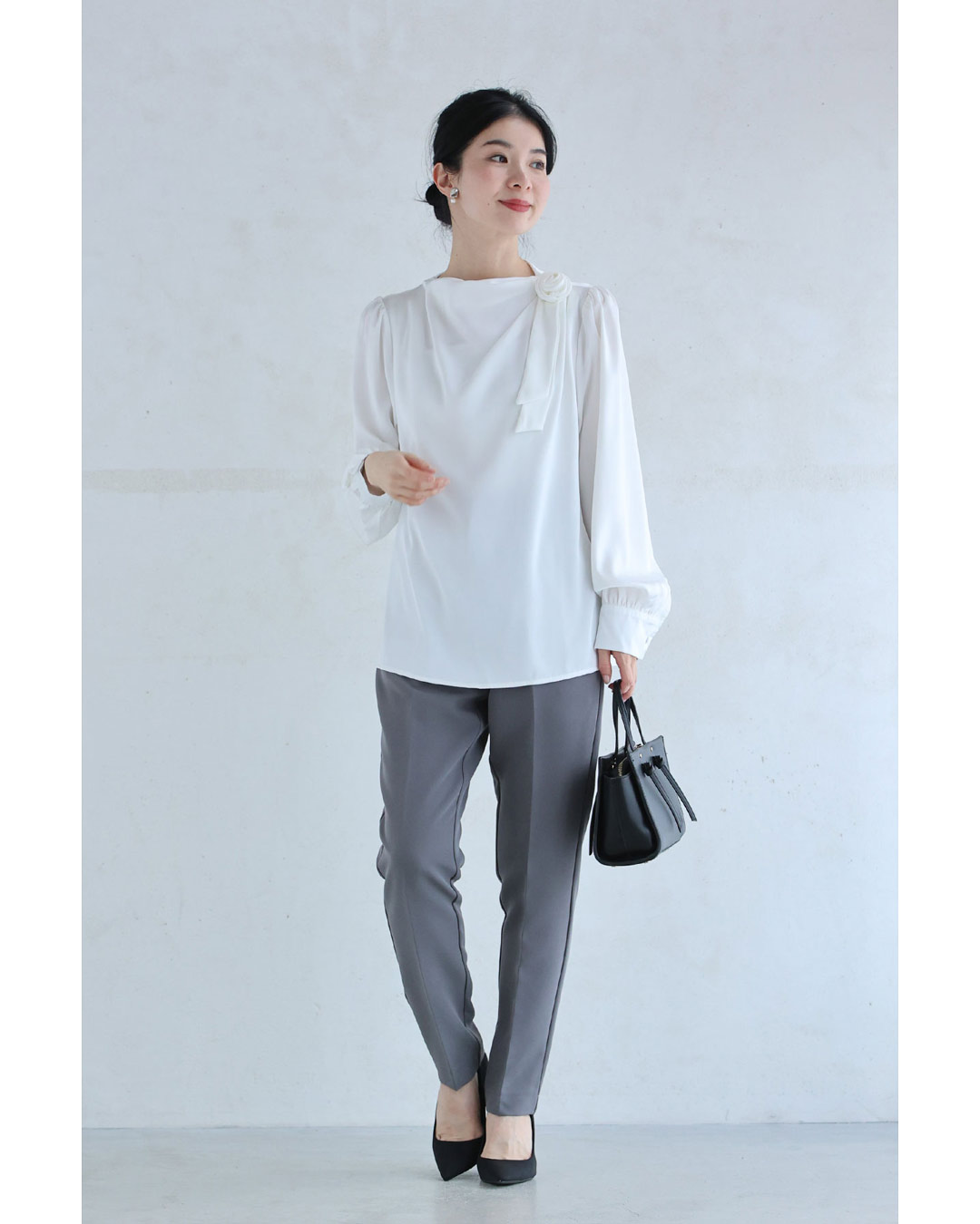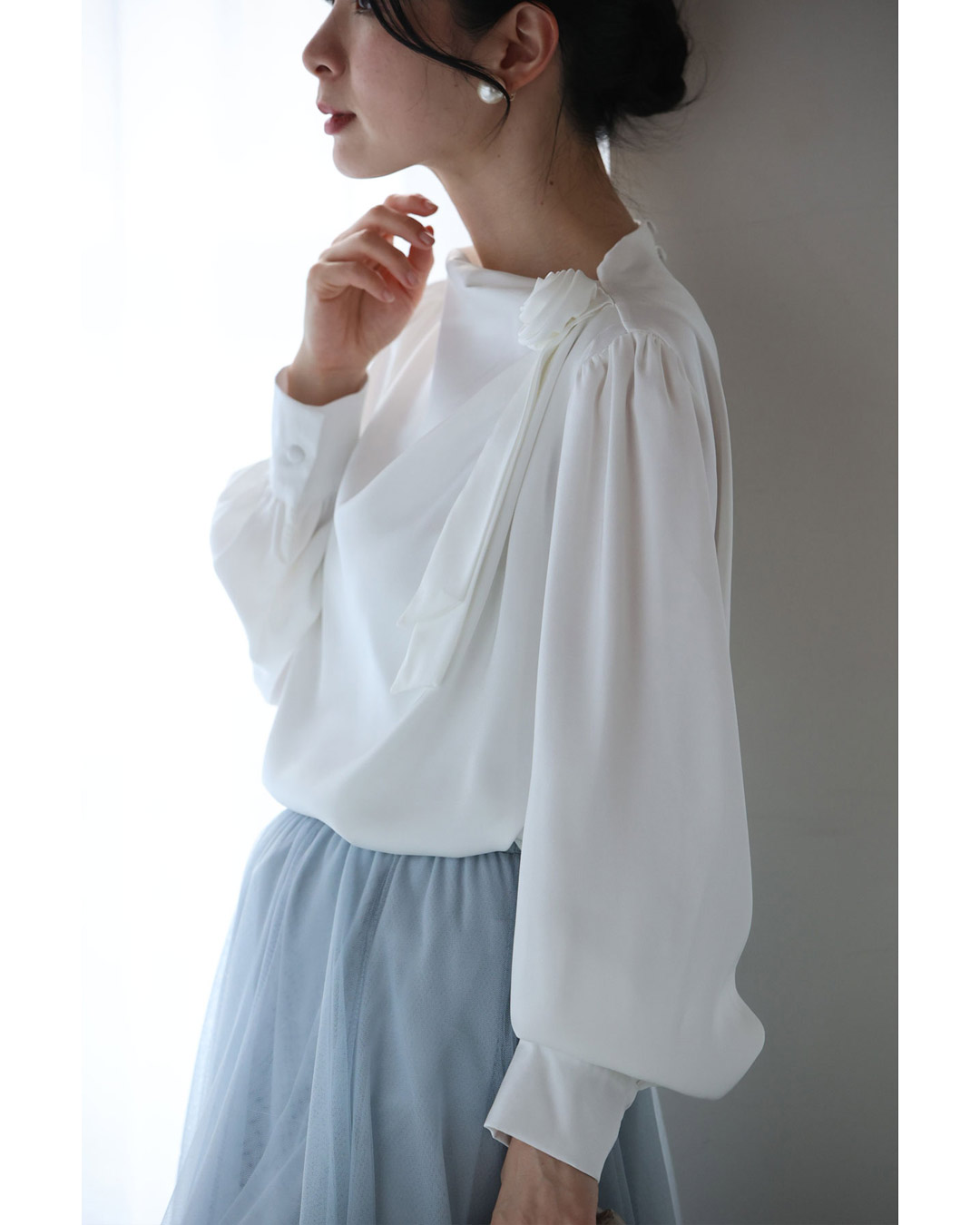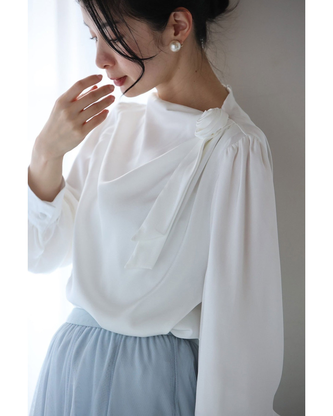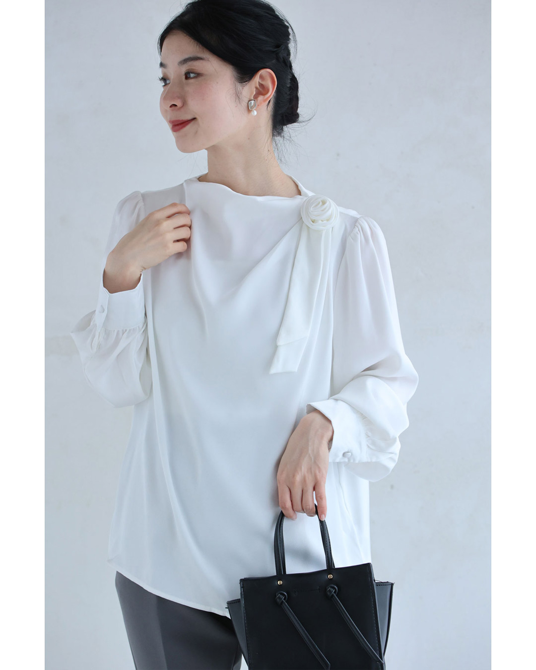 w61134ps 新作 新着 再入荷 CAWAII FRENCHPAVE フレンチパヴェ エレガント ベーシック カジュアル 可愛い かわいい カワイイ おしゃれ オシャレ お洒落 個性 個性的 定番 ベーシック 大人かわいい 大人可愛い 上品 女性らしい デザイン スタンダード ナチュラル きれいめ キレイめ シンプル フェミニン レディース レディースファッション 大人 ママ ミセス 30代 40代 50代 60代 肩に咲く 花 コサージュ ドレープ ブラウス トップス 長袖 長そで ロング袖 光沢感 ドレープ とろみ感 滑らか ワンポイント ワンサイズ Sサイズ Mサイズ Lサイズ フリーサイズ フリー 小さめ 小さめサイズ小さい 小さいサイズ 低身長 痩せ ほっそり 小柄 細身 標準サイズ 大きめシルエット 大きい 大きめ ビッグシルエット ぽっちゃり F サイズ自由 薄手 涼しい ずずしい 春 夏 夏服 夏物 春服 春物 秋服 秋物 ホワイト 白 白色 無地 ワンカラー ワントーン 日常着 普段着 日常使い オフィス オフィスカジュアル 会社 おでかけ 旅行 女子会 祝賀会 同窓会 学校行事 授業参観 保護者懇談会 三者面談