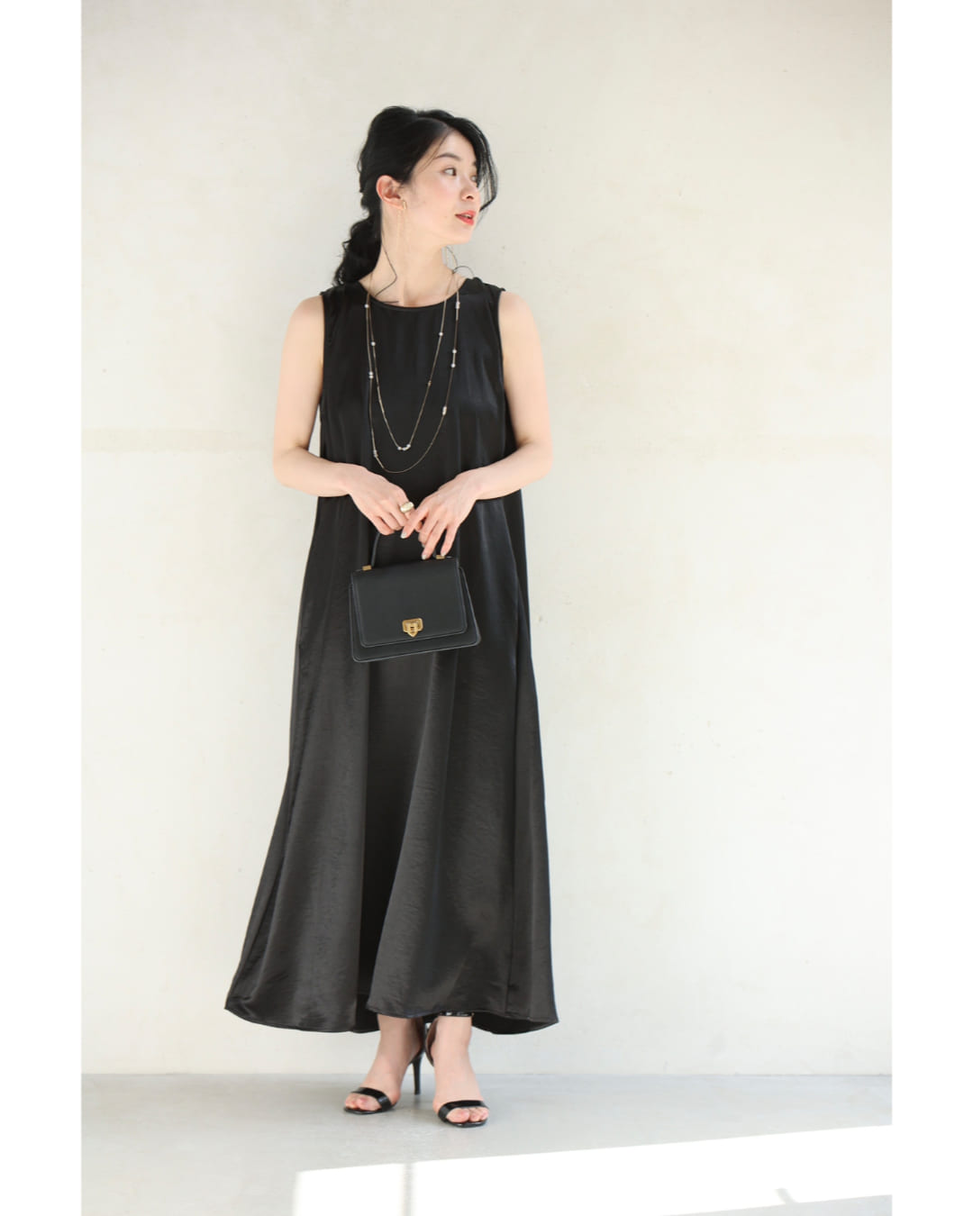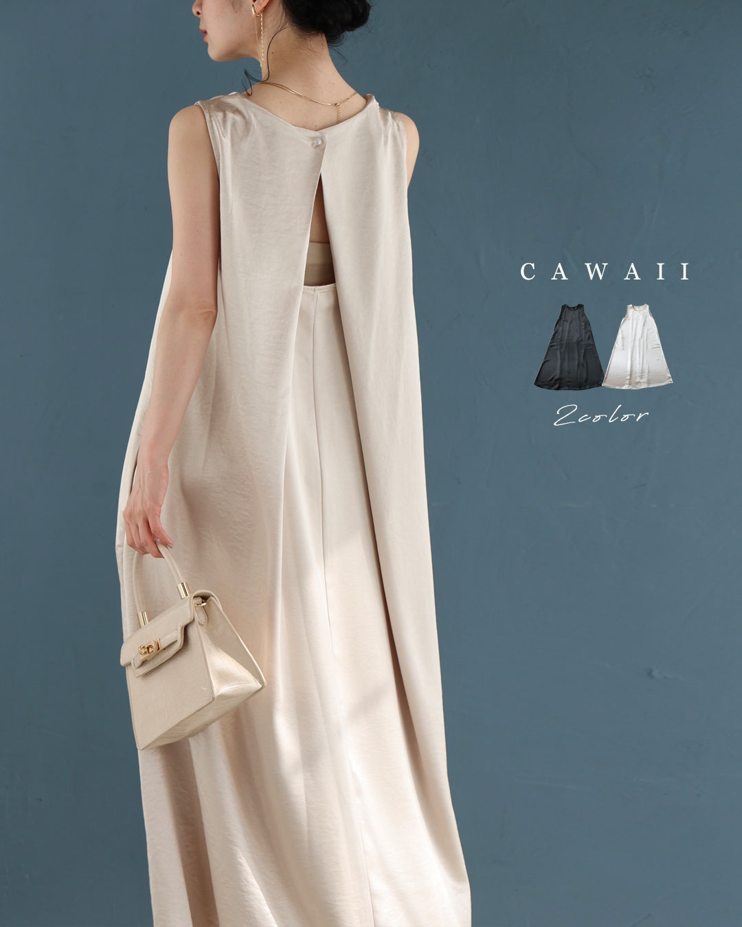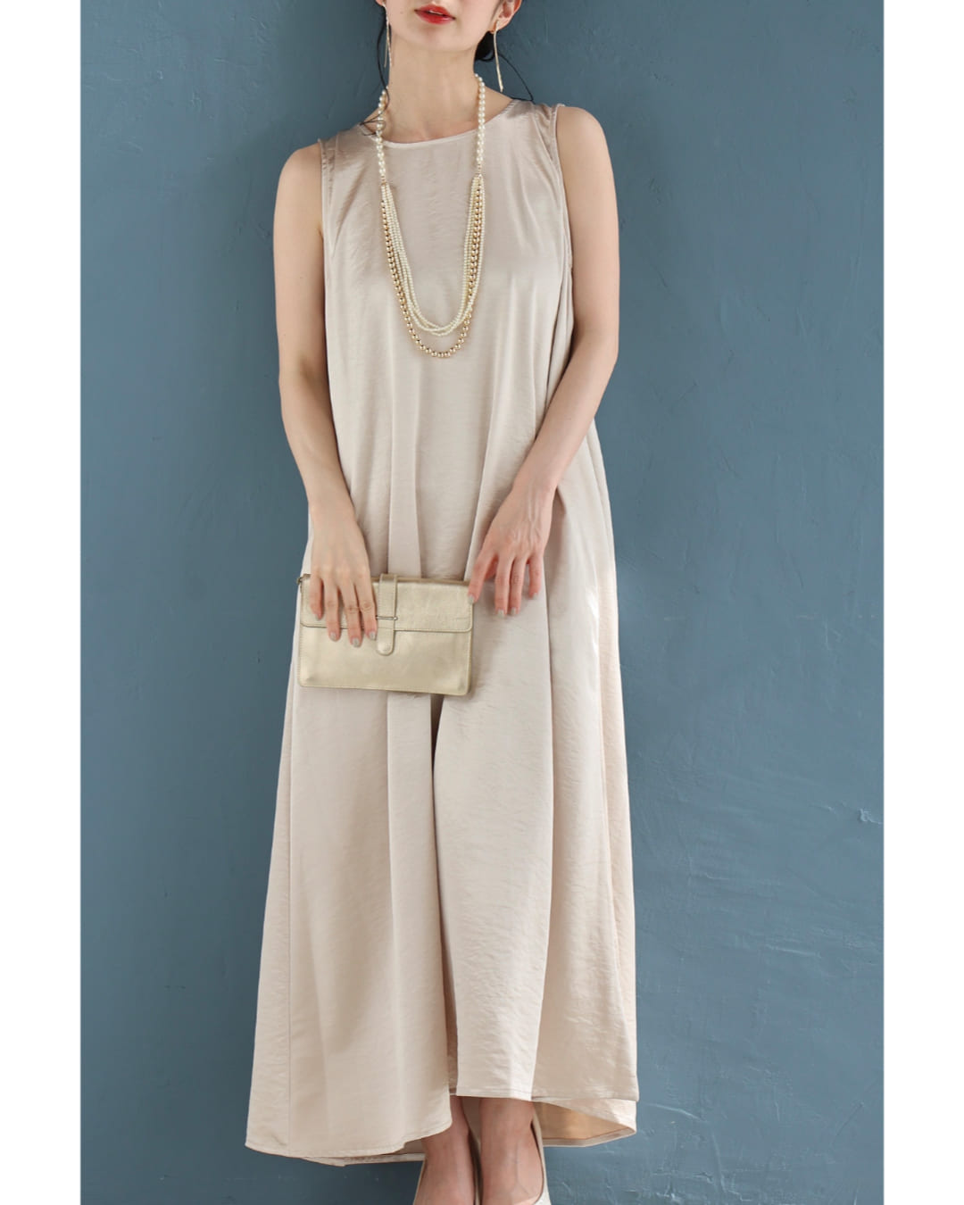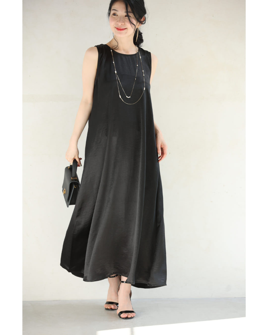 w61179ps 新作 新着 再入荷 CAWAII FRENCHPAVE フレンチパヴェ エレガント ベーシック カジュアル 可愛い かわいい カワイイ おしゃれ オシャレ お洒落 個性 個性的 定番 ベーシック 大人かわいい 大人可愛い 上品 女性らしい デザイン スタンダード ナチュラル きれいめ キレイめ シンプル フェミニン レディース レディースファッション 大人 ママ ミセス 30代 40代 50代 60代 バックタック ラグジュアリー 光沢 ロング ワンピース ノースリ 袖なし 光沢感 とろみ感 滑らか スッキリ見え 縦ライン ワンサイズ S M L 2L フリーサイズ フリー 小さめ 小さいサイズ 低身長 痩せ ほっそり 小柄 細身 標準サイズ 大きめシルエット 大きい 大きめ ビッグシルエット ゆったり F サイズ自由 薄手 涼感性 涼しい ずずしい 春 夏 春服 春物 夏 夏服 夏物 ブラック 黒 黒色 ベージュ クリーム 無地 ワンカラー ワントーン 体型カバー 楽ちん 楽チン ラクラク 楽々 普段着 日常使い おでかけ 旅行 サマードレス パーティー 女子会