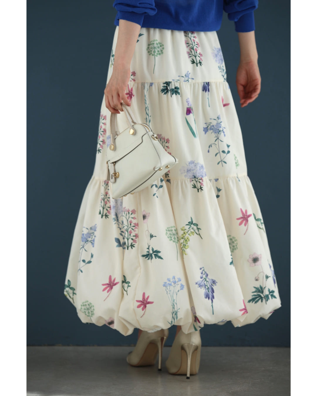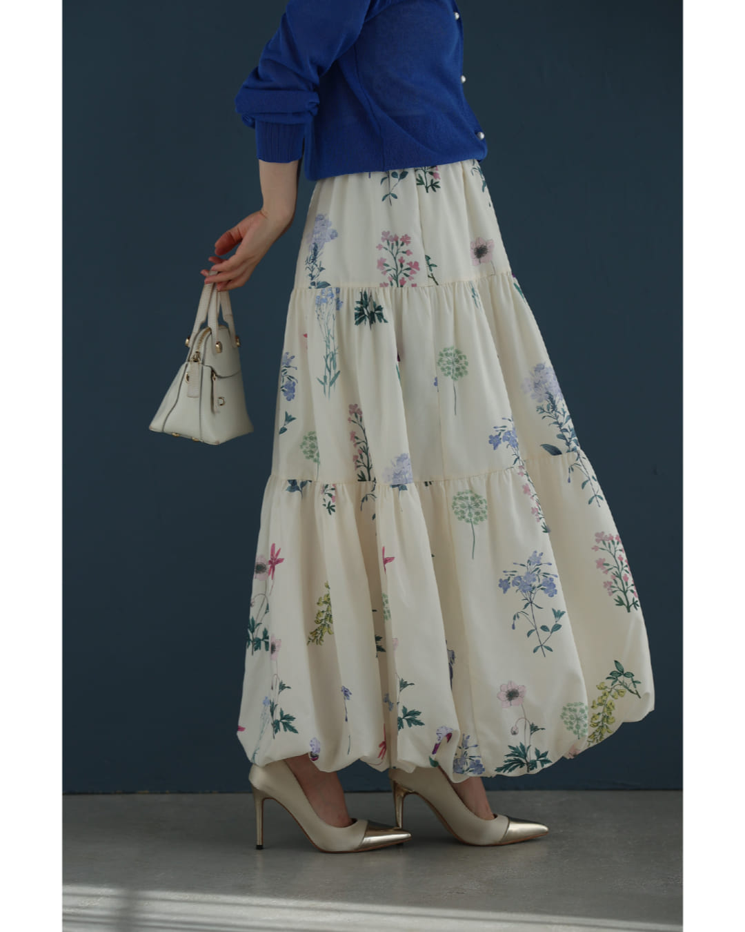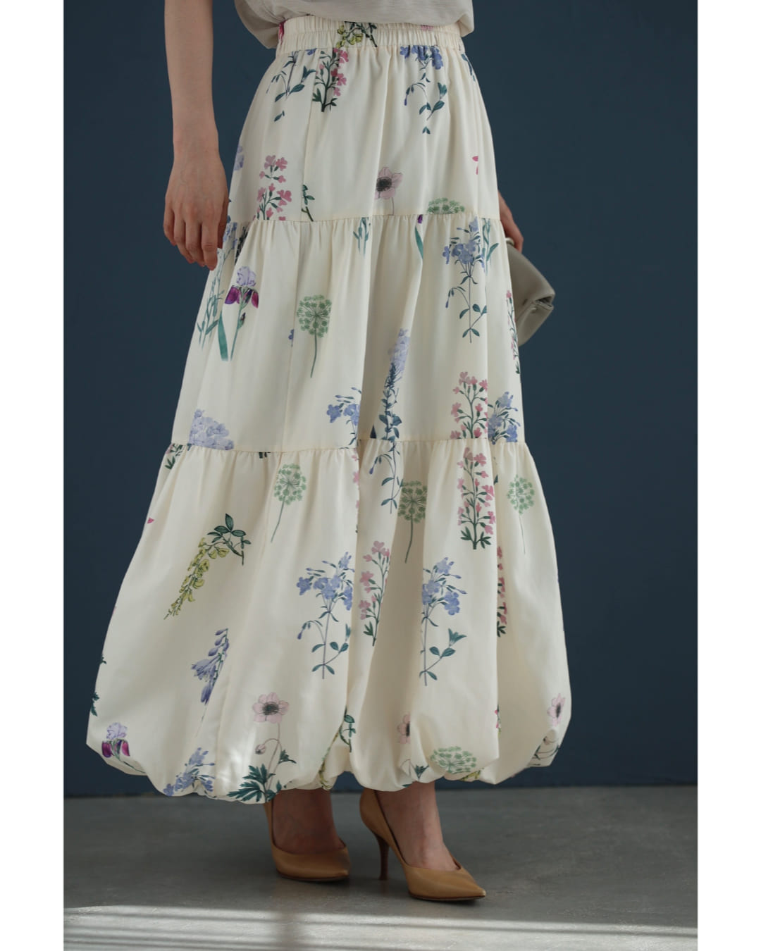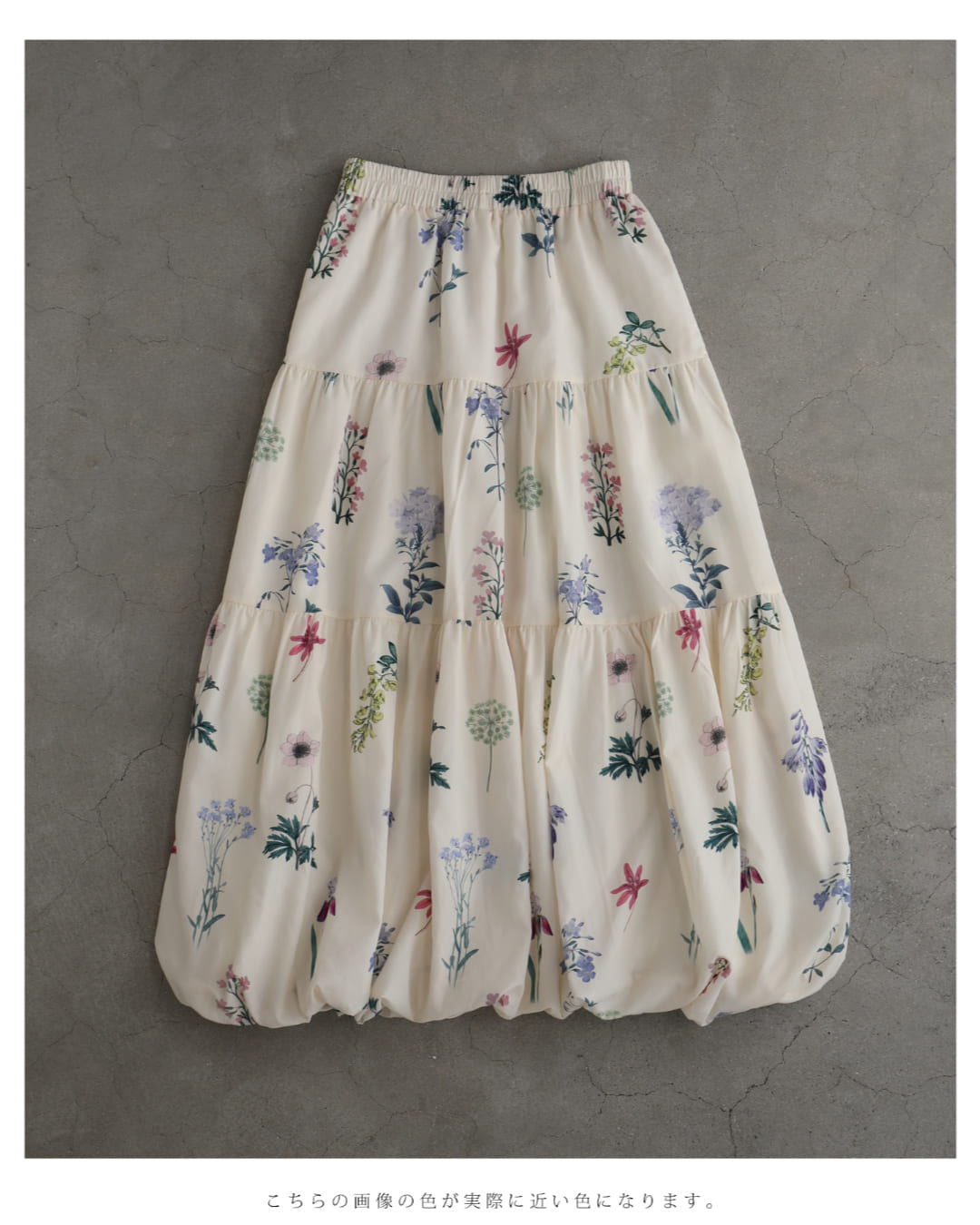 SからL対応 ふんわり花図鑑ティアードバルーンロングスカート