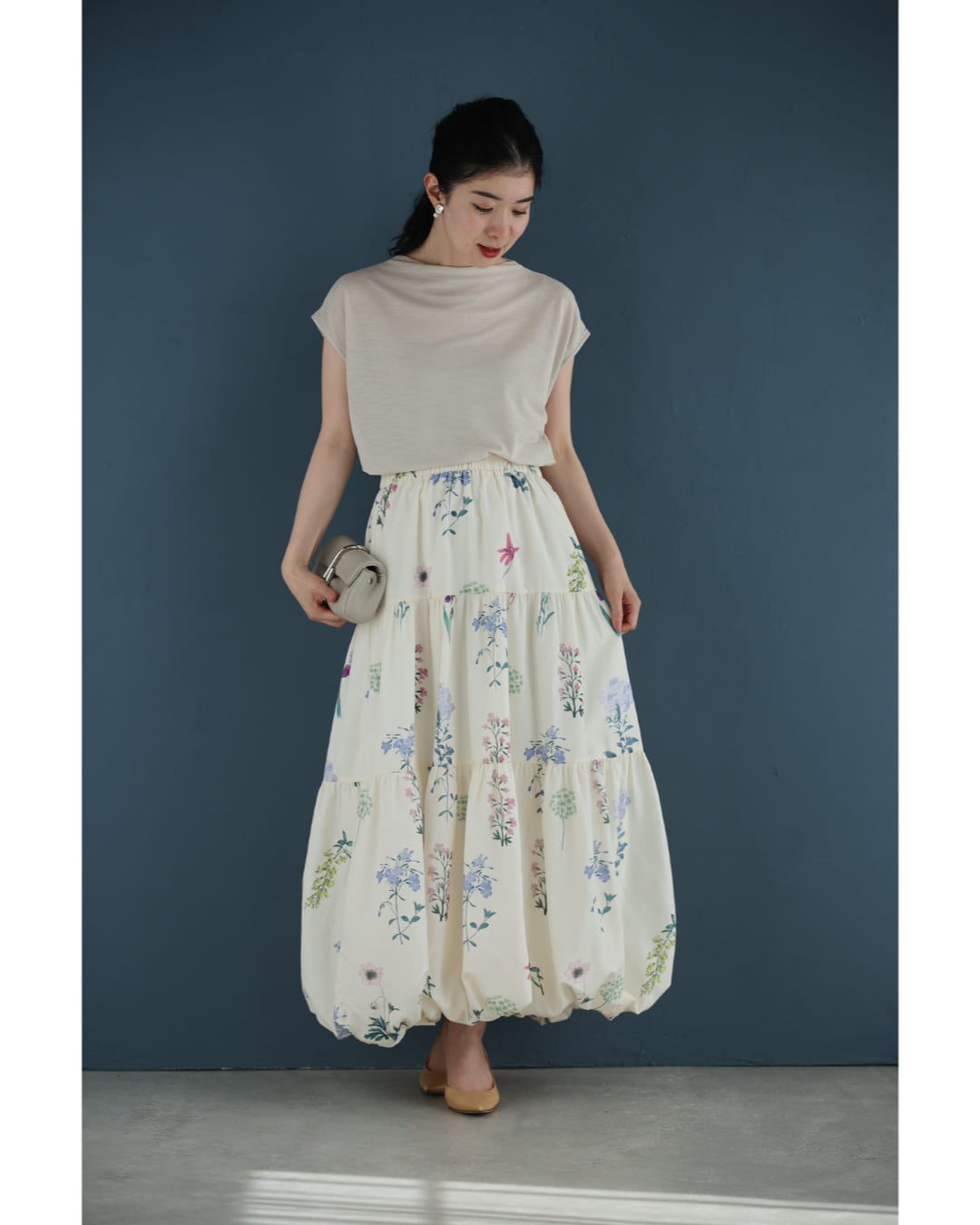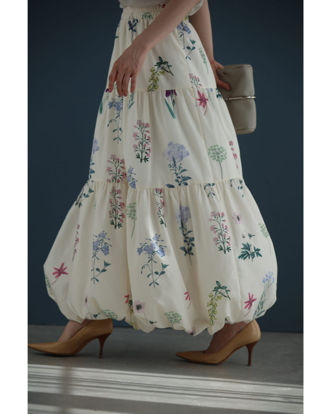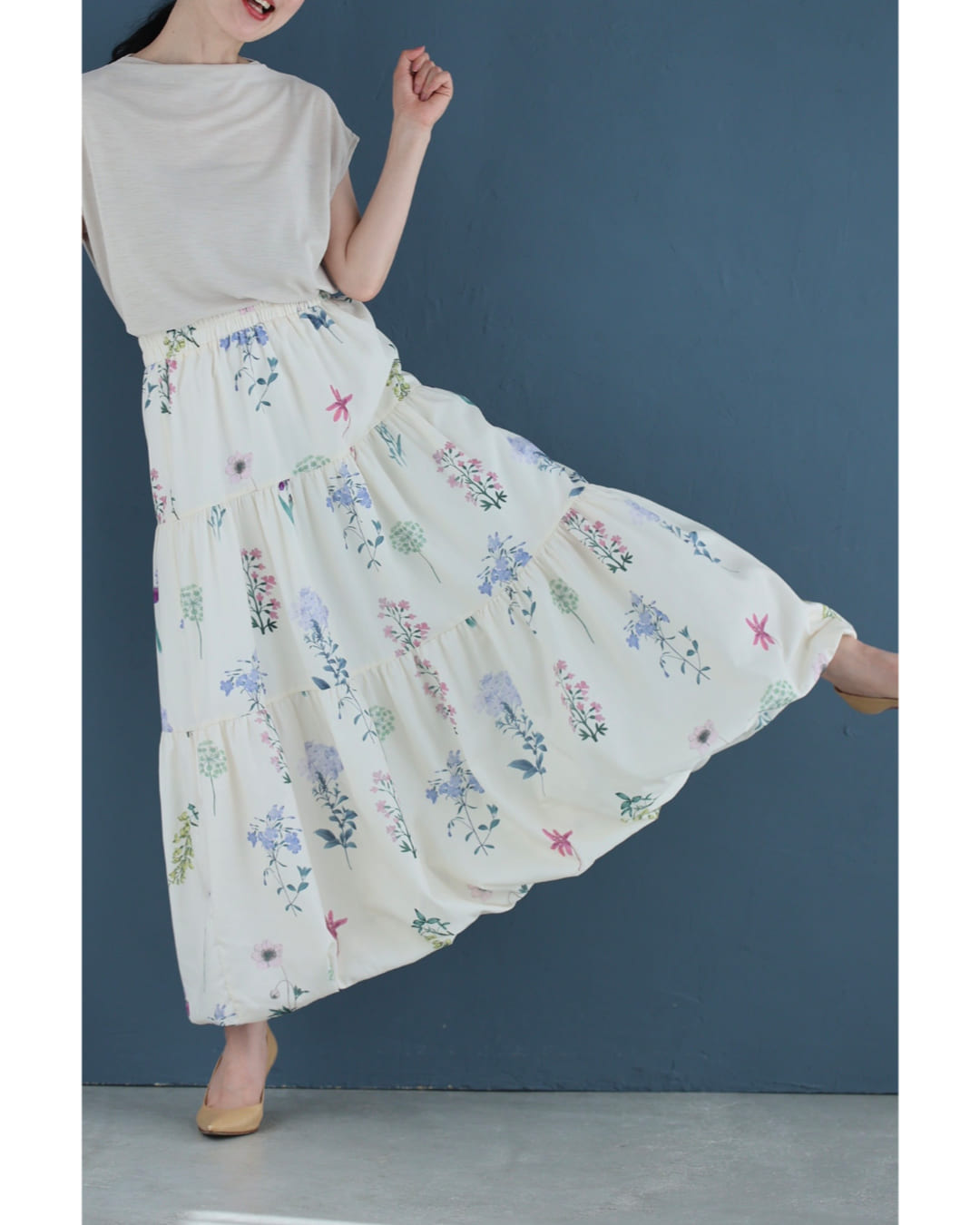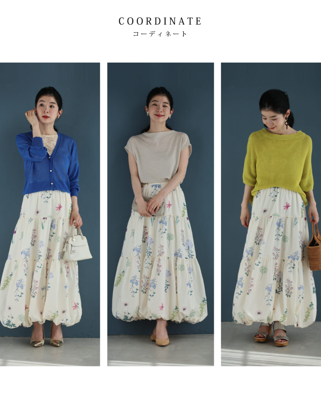 SからL対応 ふんわり花図鑑ティアードバルーンロングスカート