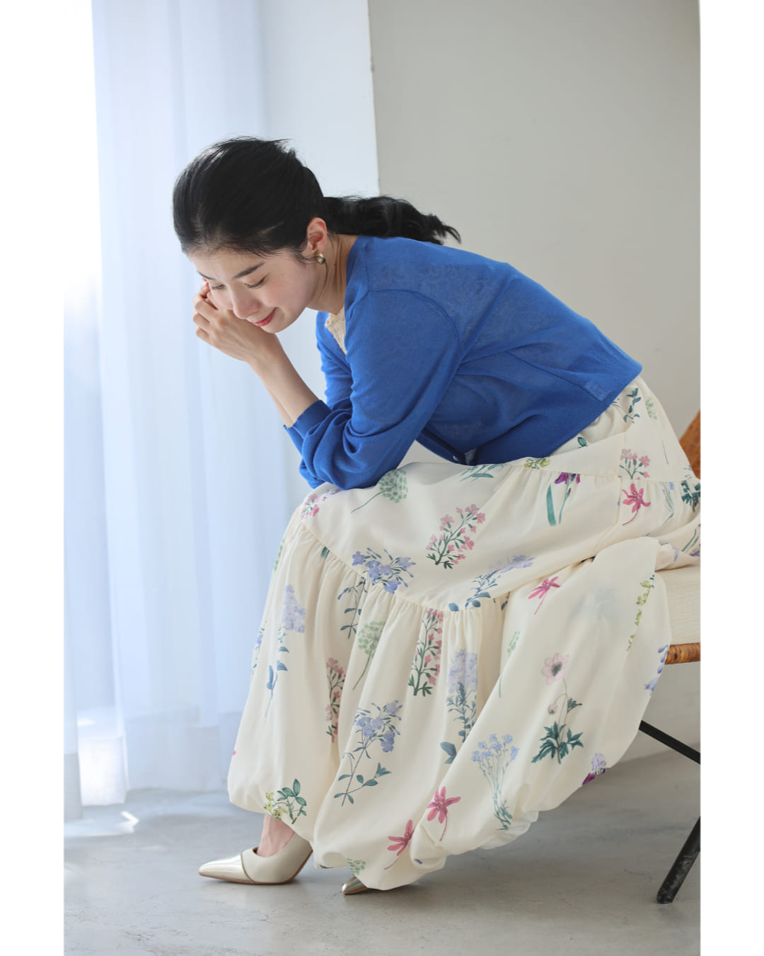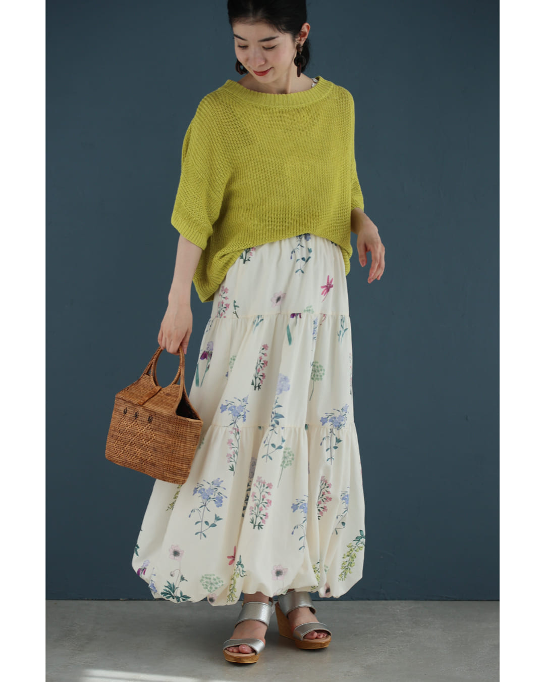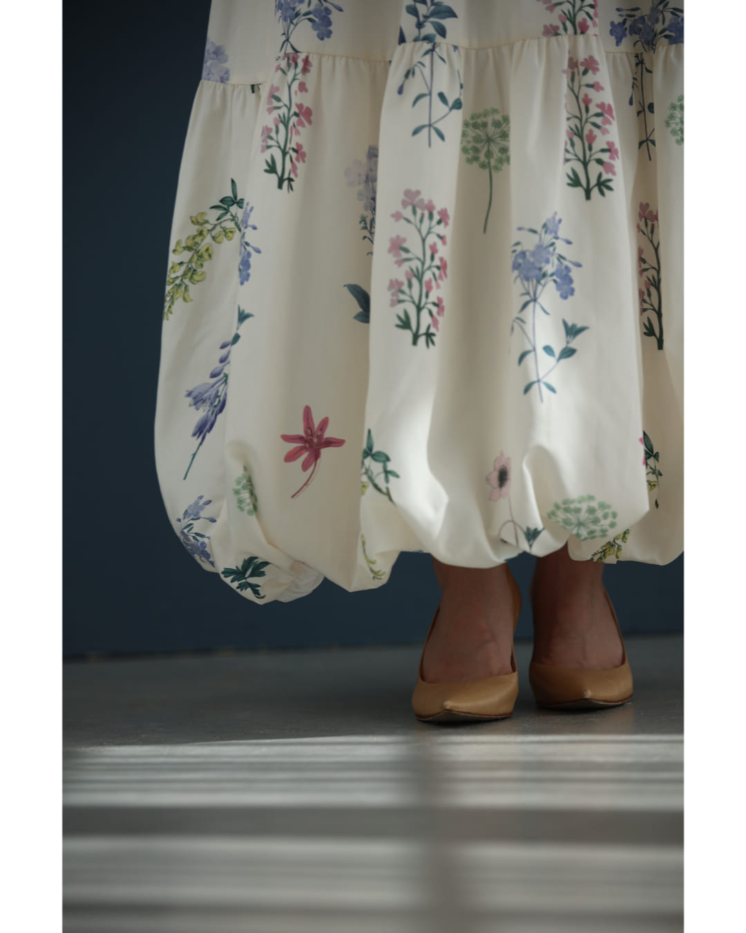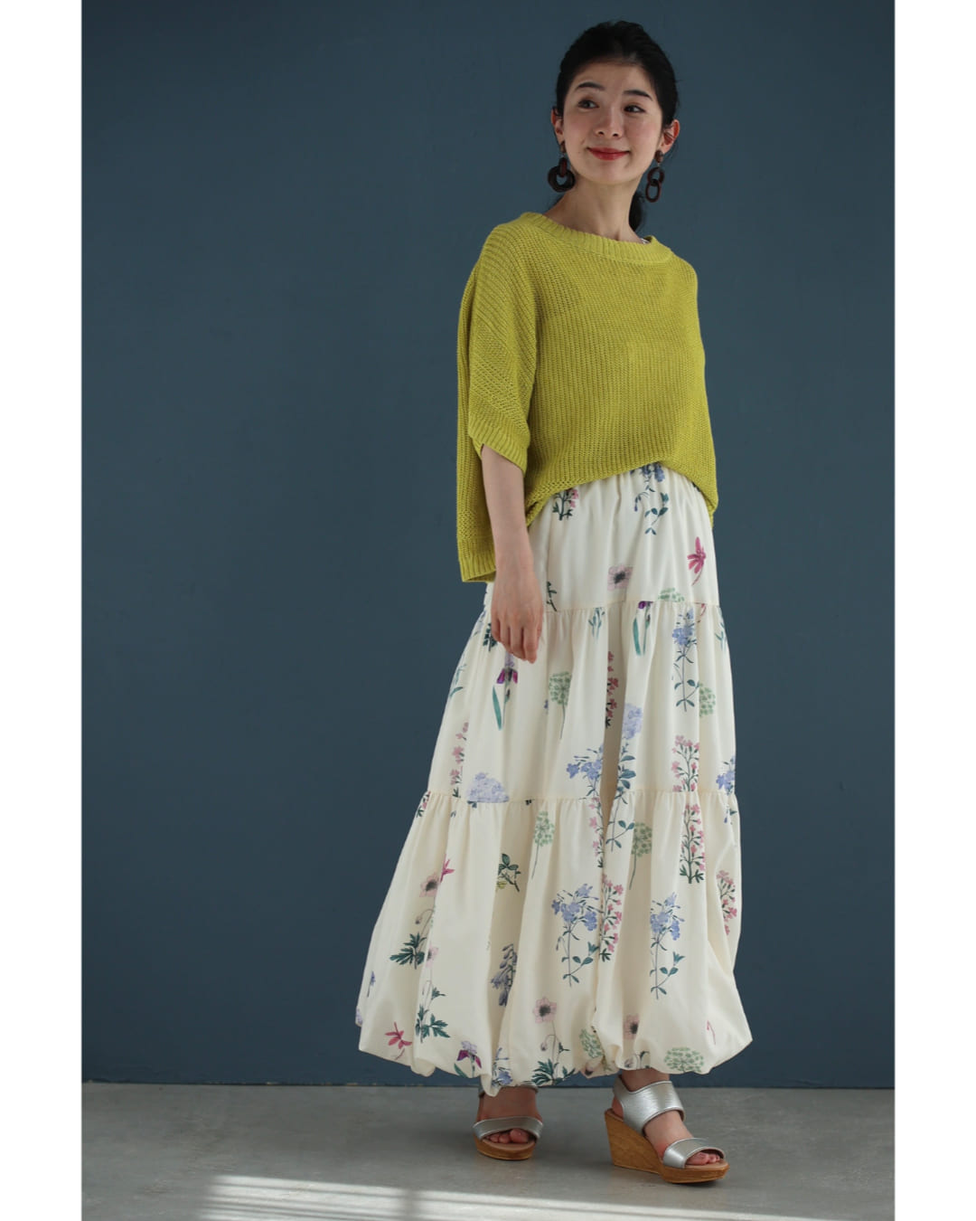 SからL対応 ふんわり花図鑑ティアードバルーンロングスカート