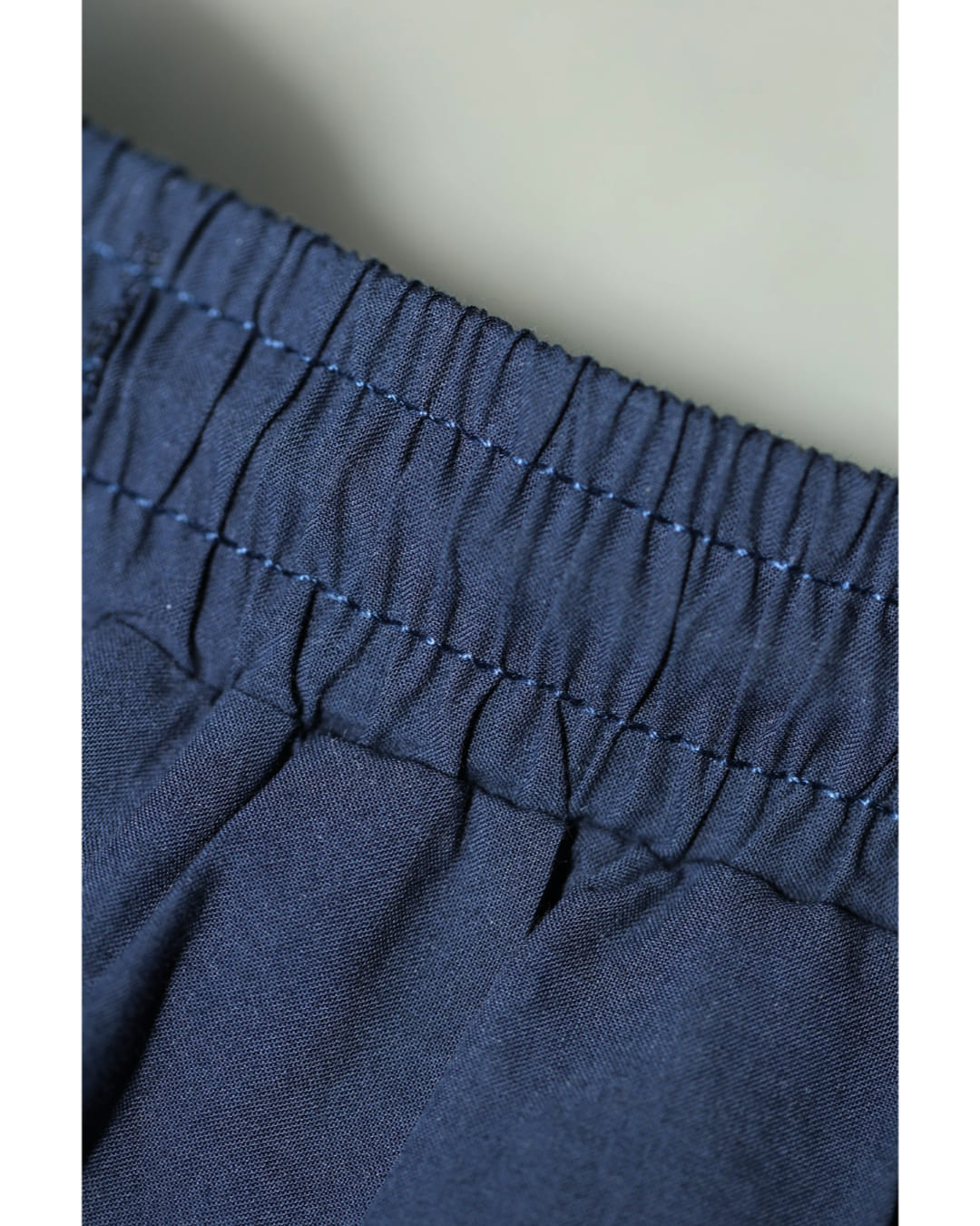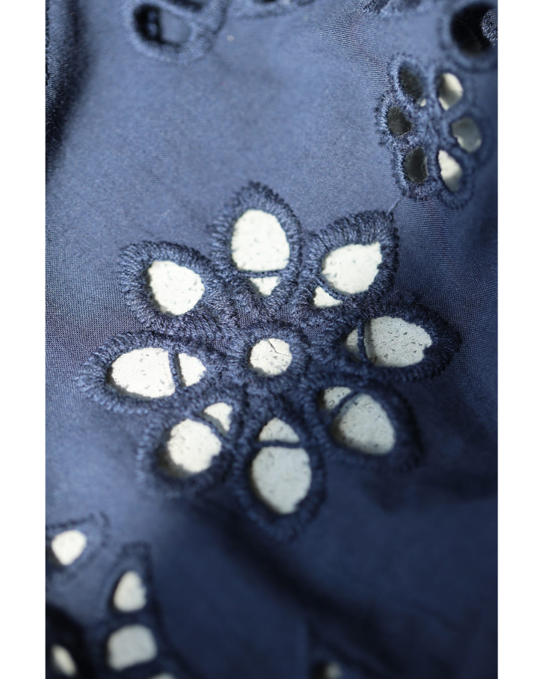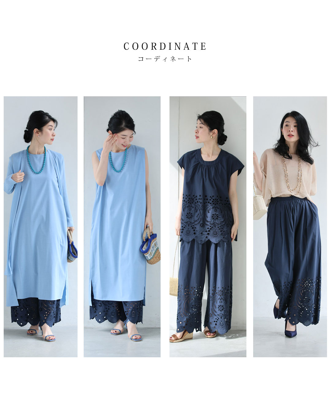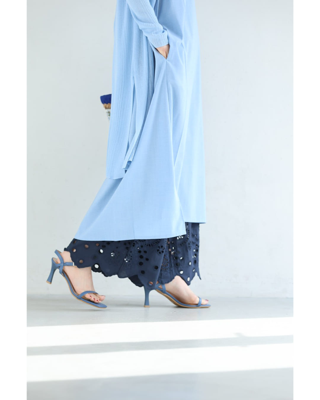 SからL対応 紺 日差しに透けるパンチングレースのワイドパンツ