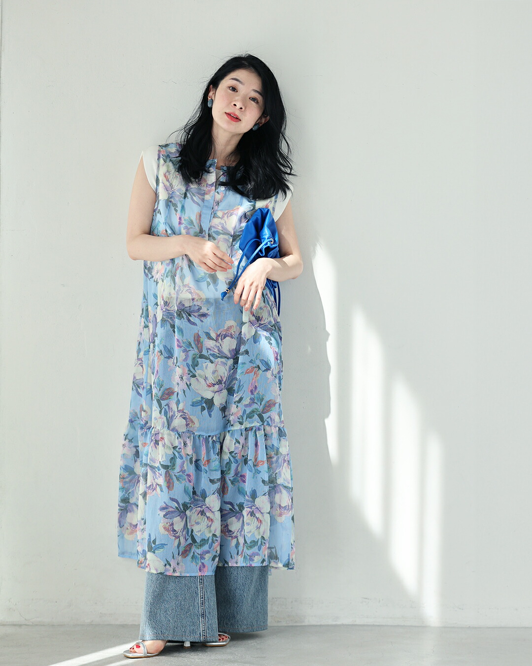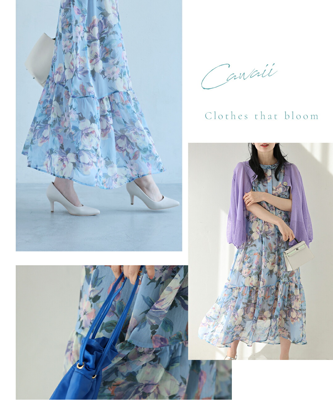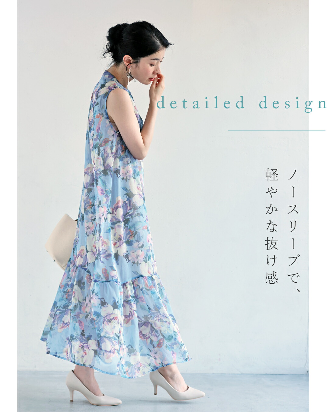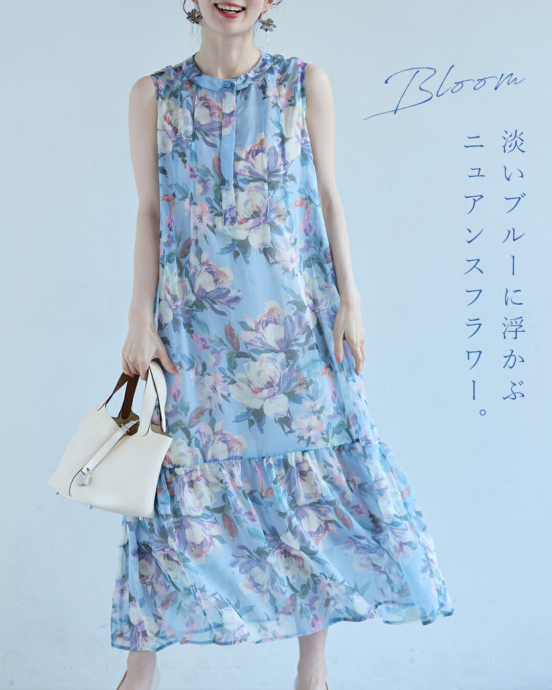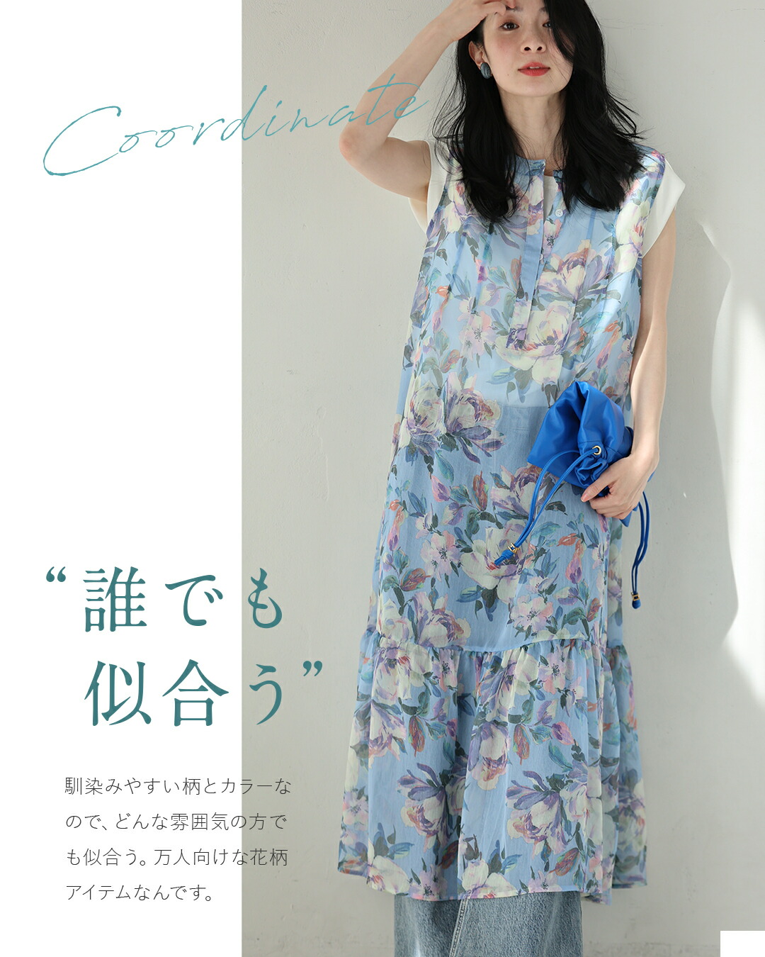 w61528ps 新作 新着 再入荷 CAWAII FRENCHPAVE フレンチパヴェ エレガント ベーシック カジュアル 可愛い かわいい カワイイ おしゃれ オシャレ お洒落 個性 個性的 定番 ベーシック 大人かわいい 大人可愛い 上品 女性らしい デザイン スタンダード ナチュラル きれいめ キレイめ シンプル フェミニン レディース レディースファッション 大人 ママ ミセス 30代 40代 50代 60代 暖かな日差しに花開くシアーミディアムワンピース インナー付 ノースリ S M L XL サイズ展開 標準サイズ 大きめ ゆったり 細身 薄手 涼感性 涼しい ずずしい 春 夏 春服 春物 夏服 夏物 爽やか トレンド 大人女子 体型カバー 楽 ライトブルー サックス 柄 総柄 花 フラワー ガーデン 日常使い デイリー おでかけ リゾート 旅行 デート シフォン