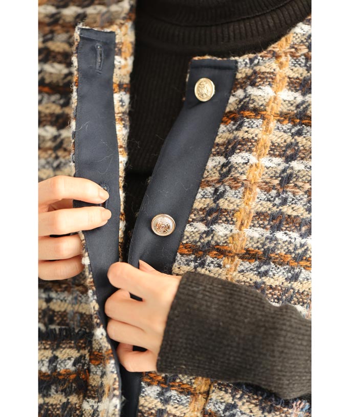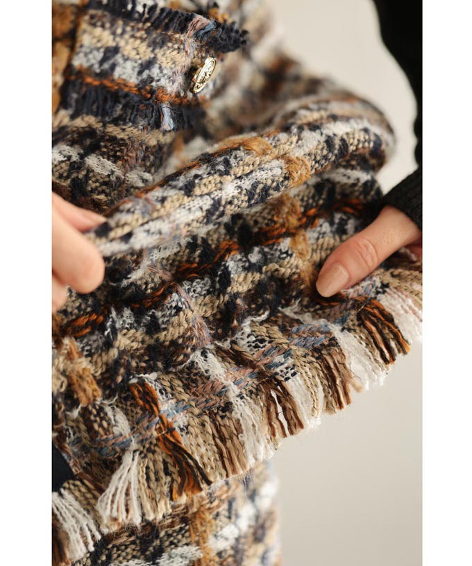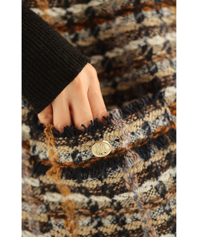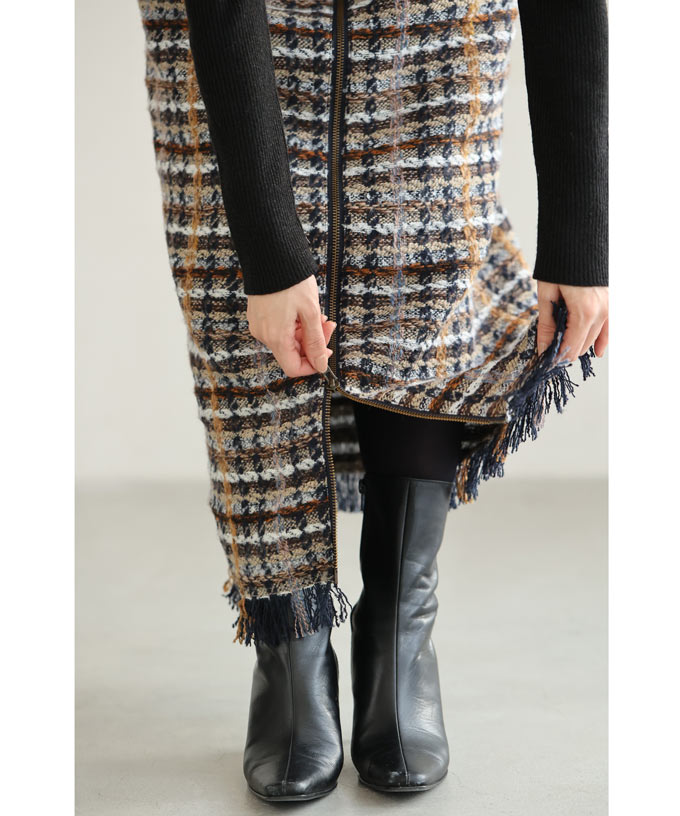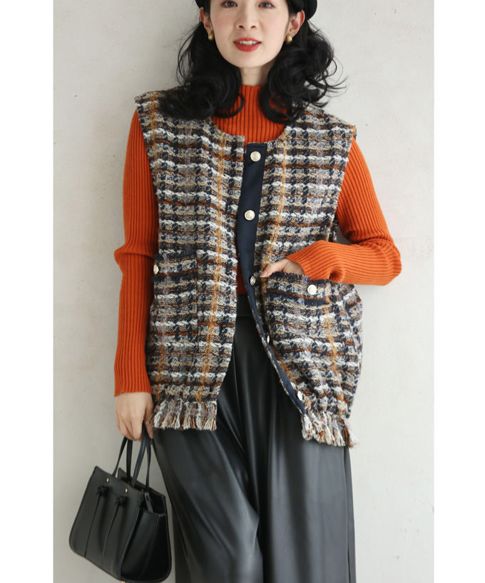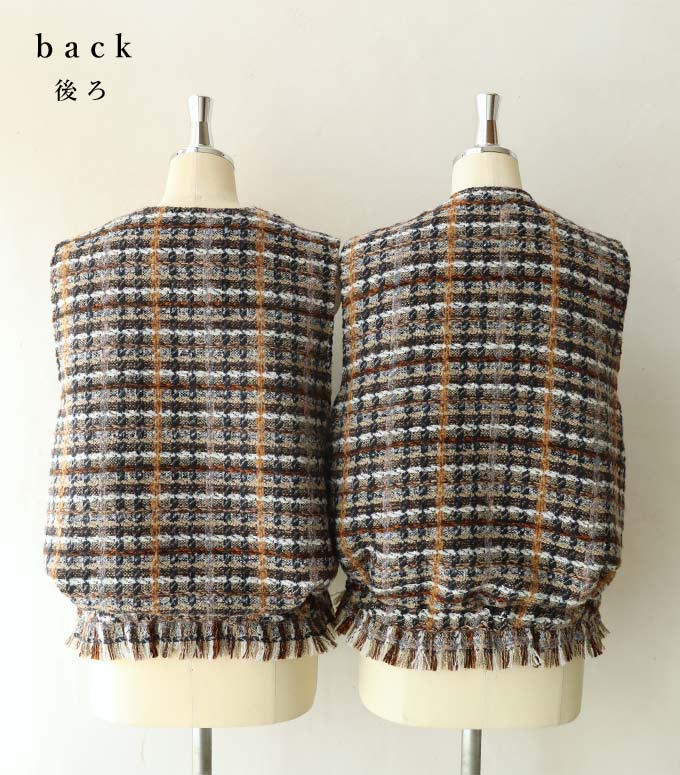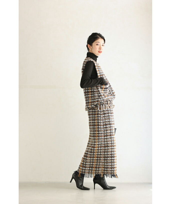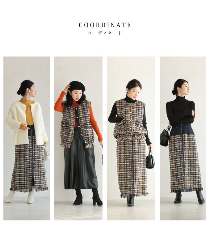 チェックツイード風ベストとスカートのセットアップ