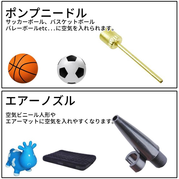 ニードルアダプターも付属でフニャフニャになったボールにも空気が注げます。