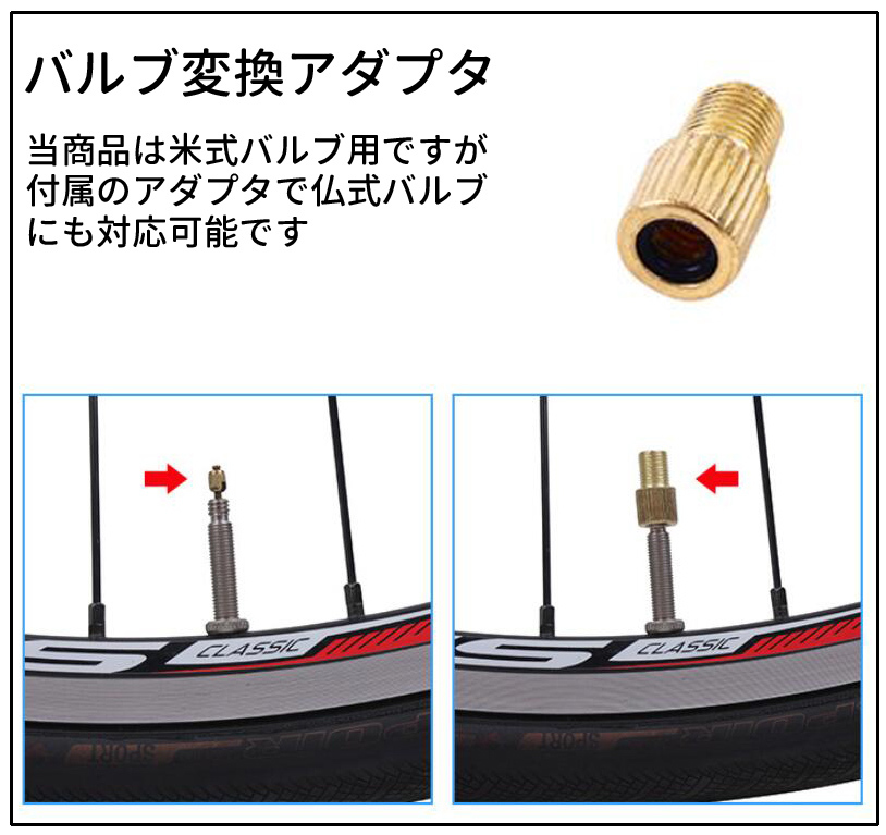 それなら大丈夫です。付属のアダプタを使用すれば英式のバルブでも対応します。