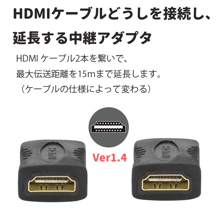 HDMIケーブル同士を接続し、延長する中継アダプタです。